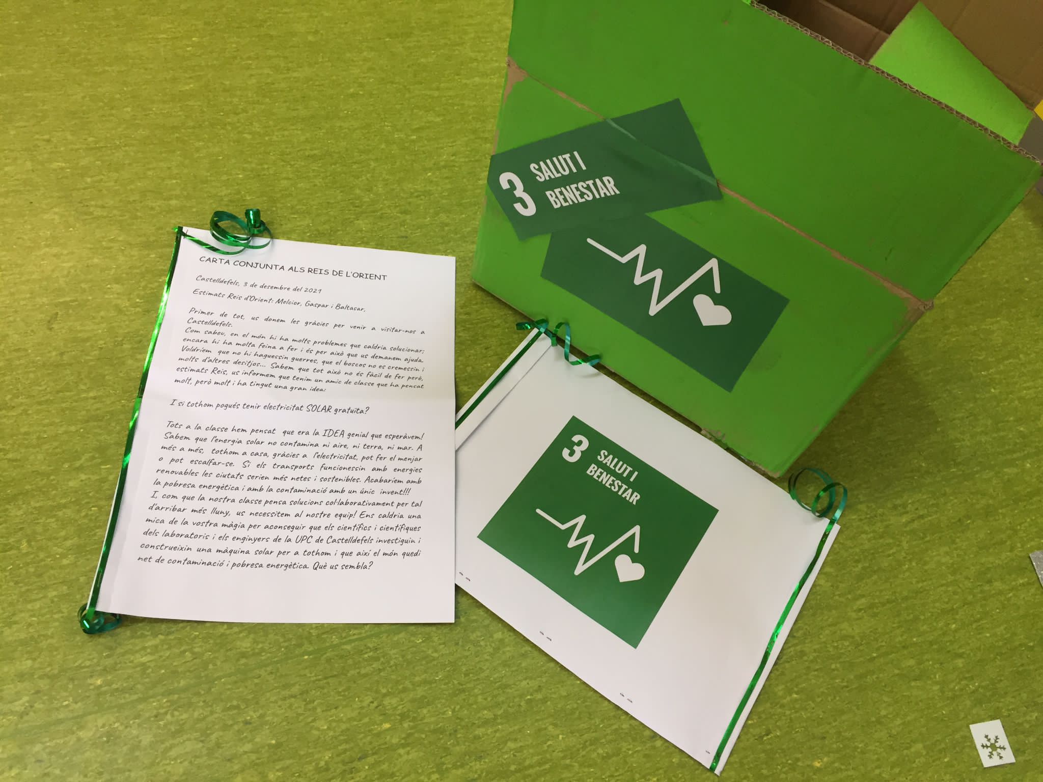 Volem donar l’enhorabona a l’alumnat de 3rA de l’escola ja que ha estat la classe guanyadora en el concurs de la Carta als Reis promogut per l’Ajuntament de Castelldefels . La seva carta ha estat la seleccionada per a representar a les escoles de Castelldefels per ser llegida a Ses Majestats la nit del 5 de gener al balcó de l’ajuntament. Tot l’alumnat està molt content i emocionat, ja que és una carta escrita de forma col·laborativa entre tots els nens i nenes de la classe dels “IOGATEAMS”. Tenint present que aquest any tota l’escola treballa com a eix transversal l’ODS 3 de l’agenda 2030, el seu desig principal ha estat el de demanar Salut i Benestar per tothom. Si voleu sentir aquesta carta tant bonica que han escrit, us esperem la nit de Reis al Balcó de l’Ajuntament.