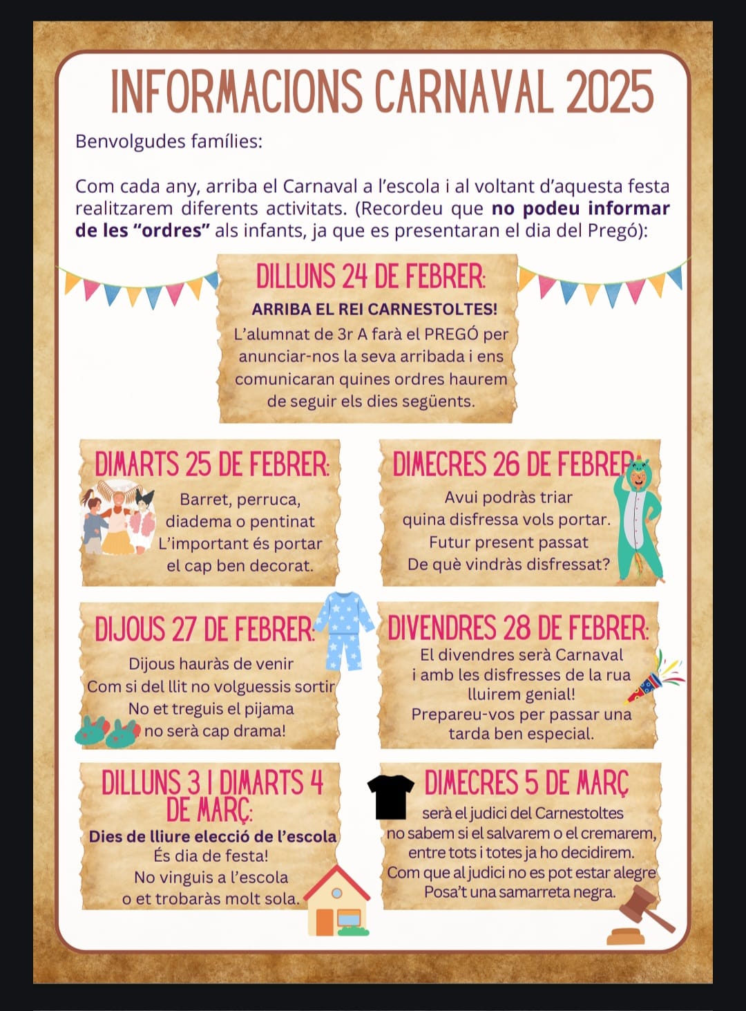 Ja arribat el Rei Carnestoltes! Feu un comentari / Per susanna Vila / 24 de febrer de 2025 / AFA Carnaval General Portada El Rei Carnestoltes ha arribat i ens ha fet el seu PREGÓ i ens ha deixat unes odres… que per seguir-les, DÉU N’HI DO! Aquí les teniu escrites per si no ho heu escoltat Que comenci la disbauxa i el Carnaval més sonat!