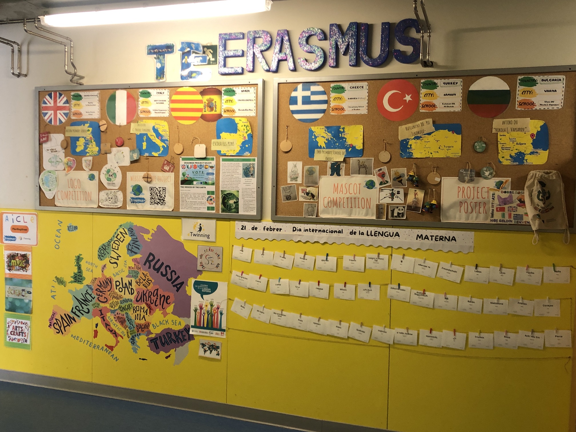 Cada  21 de febrer es celebra  el Dia internacional de la LLENGUA MATERNA. Enguany, i a proposta de la Comissió del Pla Educatiu de l’Entorn de Castelldefels Llengcast, participem juntament amb altres escoles de la ciutat a l’activitat  “PARAULES AMB COR”. Al llarg d’aquests dies  hem recollit diferents “paraules amb cor” que ens ha regalat l’alumnat en totes les seves llengües maternes amb el seu significat en català i les hem exposat al racó Erasmus de les llengües.