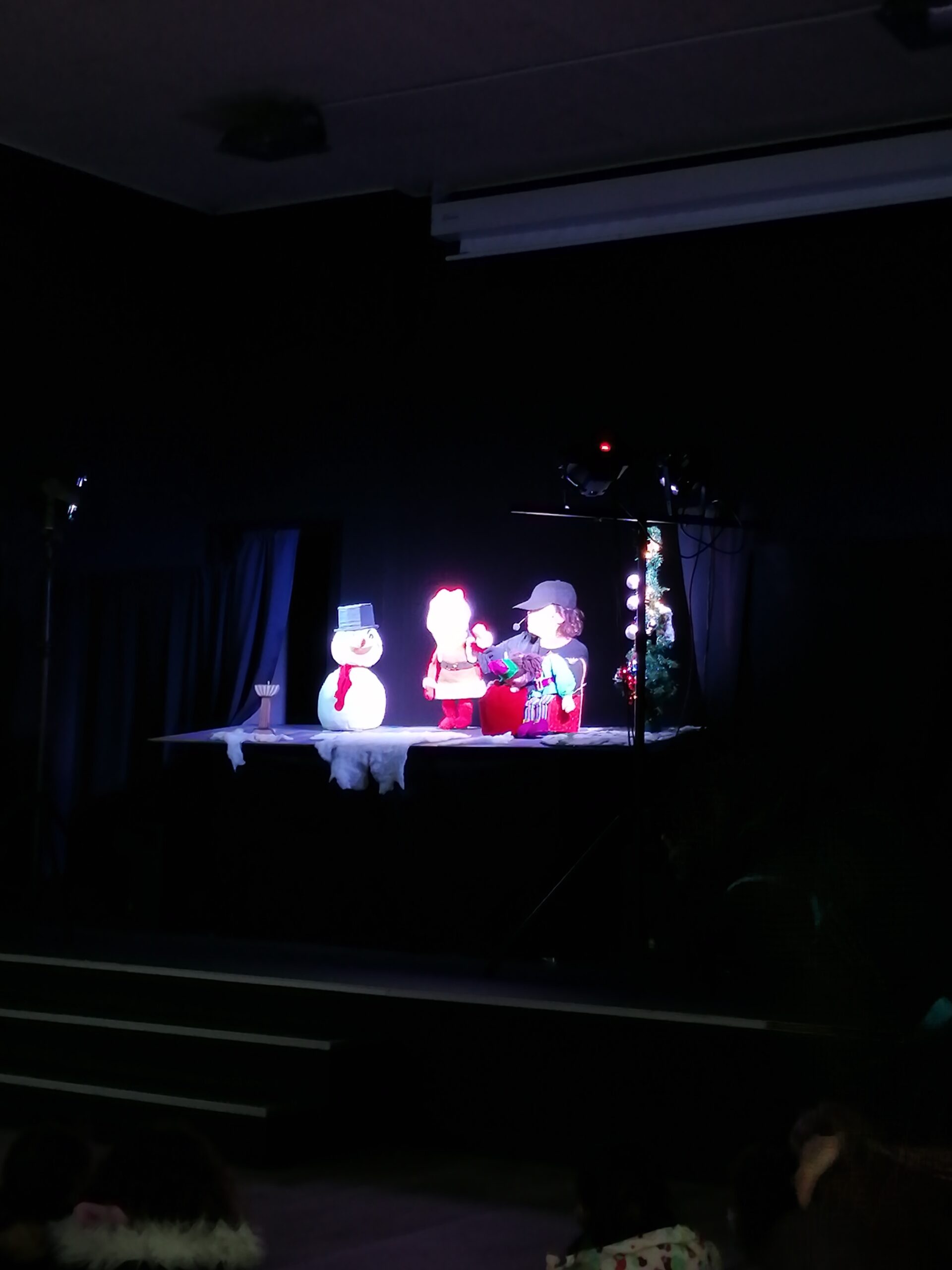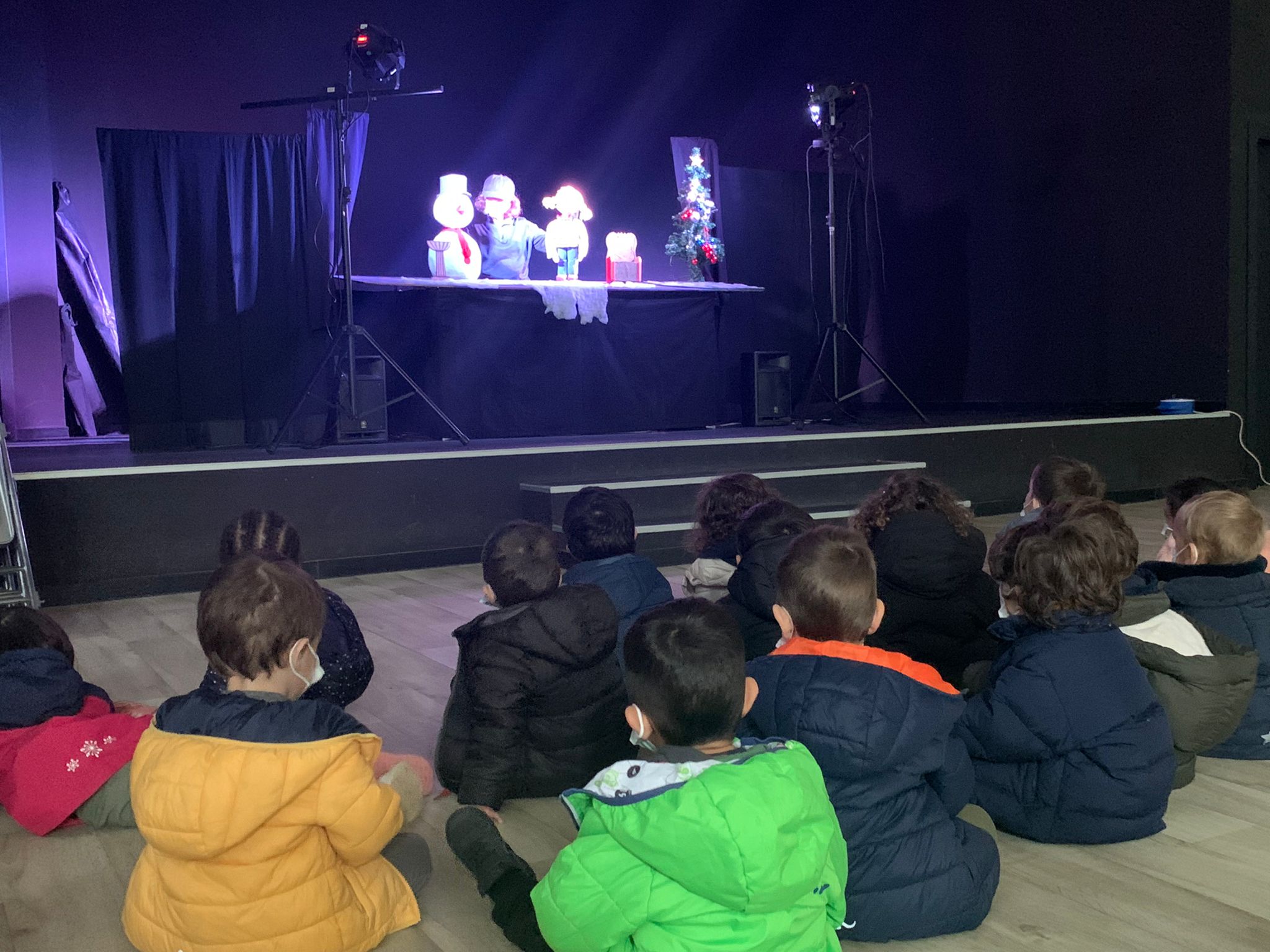 El dia 10 de desembre una parella d’actors van representar una obra amb titelles a l’alumnat d’infantil de l’escola. A l’obra hi sortien dos dimoniets que feien trapelleries en temps de Nadal. En “Banyetes” feia de les seves i un nen i una nena molt macos tractaven d’impedir-s’ho. Ens va agradar molt la història.