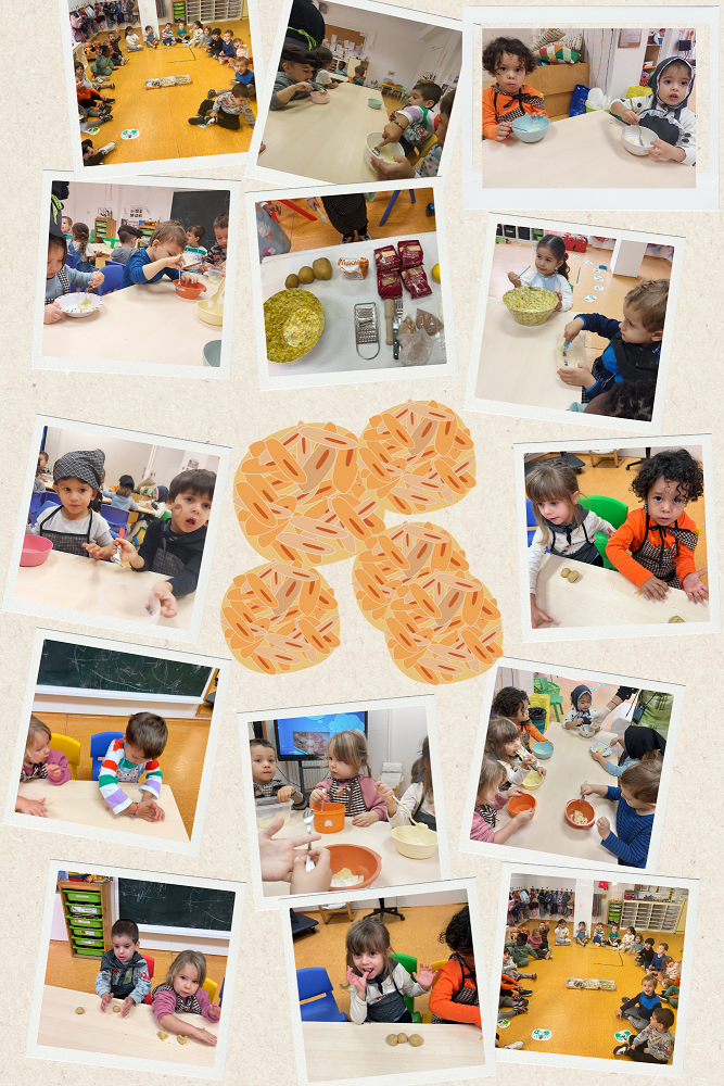 AVUI HEM GAUDIT D’UN MATÍ FENT PANELLETS AMB ELS COMPANYS I COMPANYES. ALS INFANTS HAN ELABORAT LA SEVA MASSA, HAN FET TRES PANELLETS, I PER ÚLTIM ELS HAN DECORAT: UN AMB XOCOLATA, UN ALTRE AMB COCO I UN ALTRE AMB UNA AMETLLA.