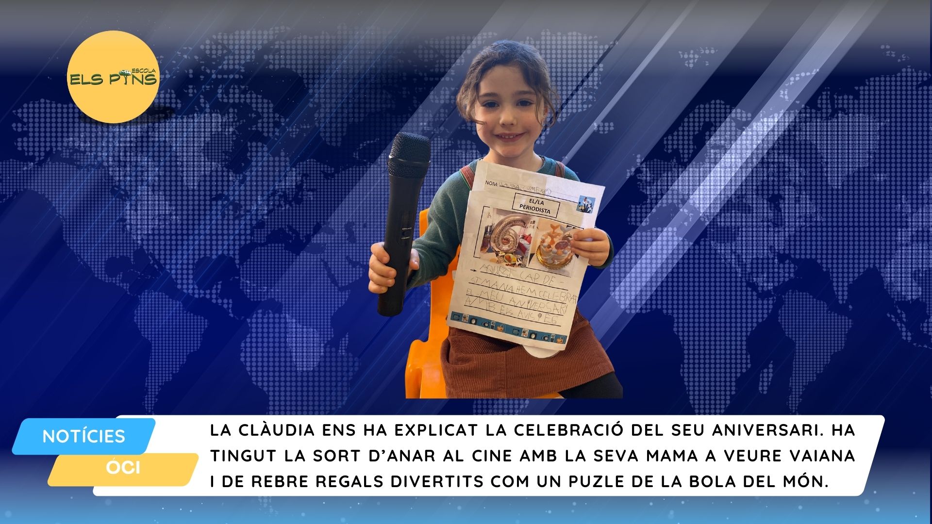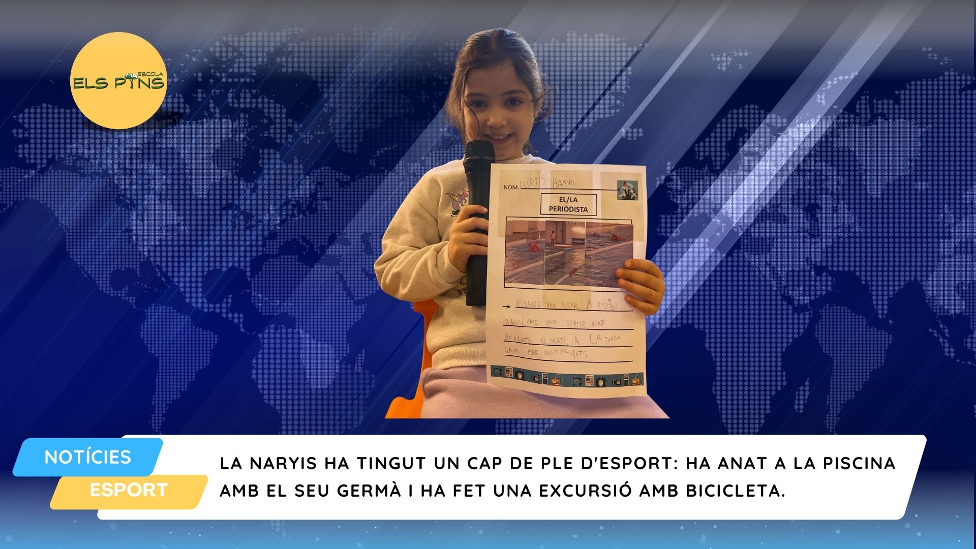 I5: PERIODISTA DE LA SETMANA Escola Els Pins24/01/25 BONA TARDA TELEESPECTADORS I TELEESPECTADORES, UNA SETMANA MÉS ELS NENS I NENES D’I5 CONTINUEM AMB L’INFORMATIU SETMANAL. AQUESTA SETMANA ELS PERIODISTES HAN ESTAT LA CLÀUDIA, LA NARYIS, EL SANTIAGO I L’ELOI. FINS LA PROPERA!