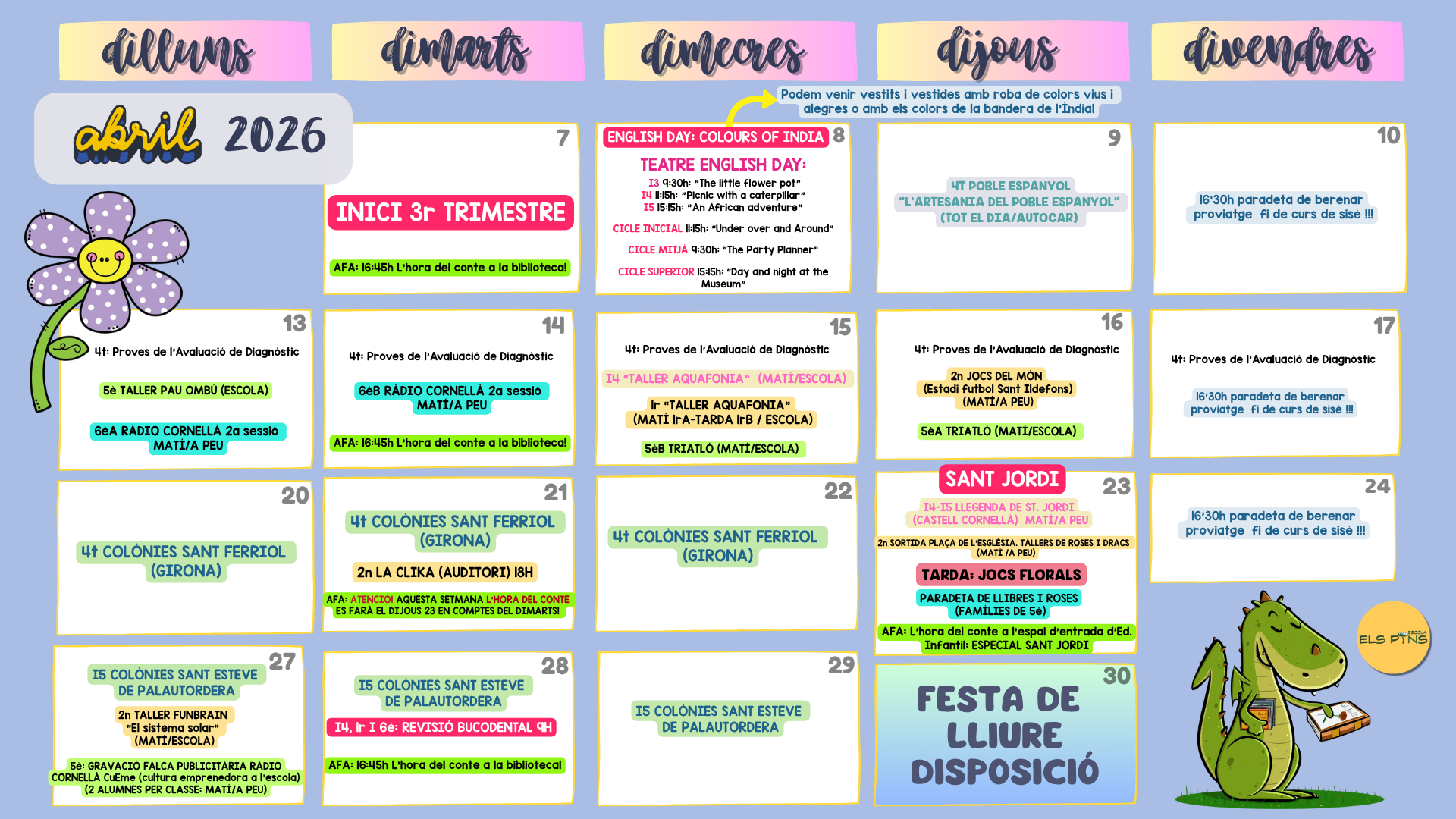 AVUI EN INFANTIL HEM DUT A TERME L’ÚLTIM DIA DE REALITZACIÓ D’AMBIENTS, ENGUANY HA ESTAT TOT UN ÈXIT, ELS I LES NOSTRES ALUMNES HAN GAUDIT DE TOTS ELS AMBIENTS DURANT L’ANY I AVUI VOLÍEM QUE FOS UN DIA ESPECIAL. PER TANT, DURANT AQUEST MATÍ… Llegeix més»