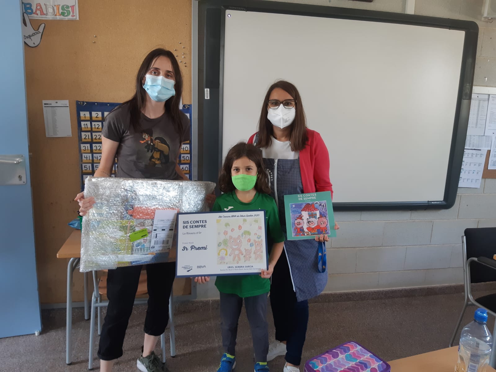 S’havia de fer un acte de lliurament de premis amb tots els guanyadors de les diferents escoles però no ha pogut ser degut a la COVID i per això li van enviar el seu regal a l’escola i a més van premiar l’escola amb 400€.