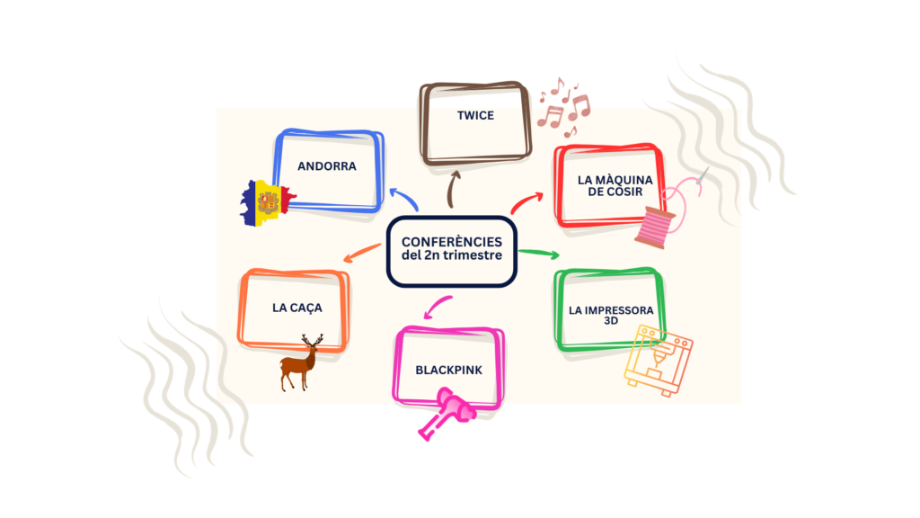Les conferències d’aquest trimestre han estat molt interessants i han despertat la curiositat de tothom. Va començar l’Andreu, de 3r, que ens va parlar d’Andorra i ens va explicar aspectes destacats d’aquest país tan proper, a més de descobrir-nos els Tamarros. Tot seguit, l’Edna, de 5è, ens va presentar una conferència sobre el grup Twice, compartint informació i curiositats sobre aquest conegut grup musical. També l’Eloi, de 3r, ens va explicar el funcionament de la màquina de cosir i ens en va mostrar la utilitat, així com la seva habilitat i l’interès que té per fer-la servir.
