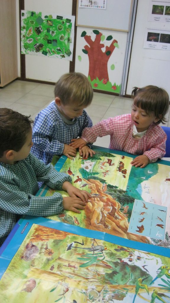 A la Llar treballem els diferents animals fent dibuixos amb les mans, jugant amb els animals de joguines, pintant imatges d’animals amb diferents materials, fent murals, escoltant cançons i els seus sorolls…
