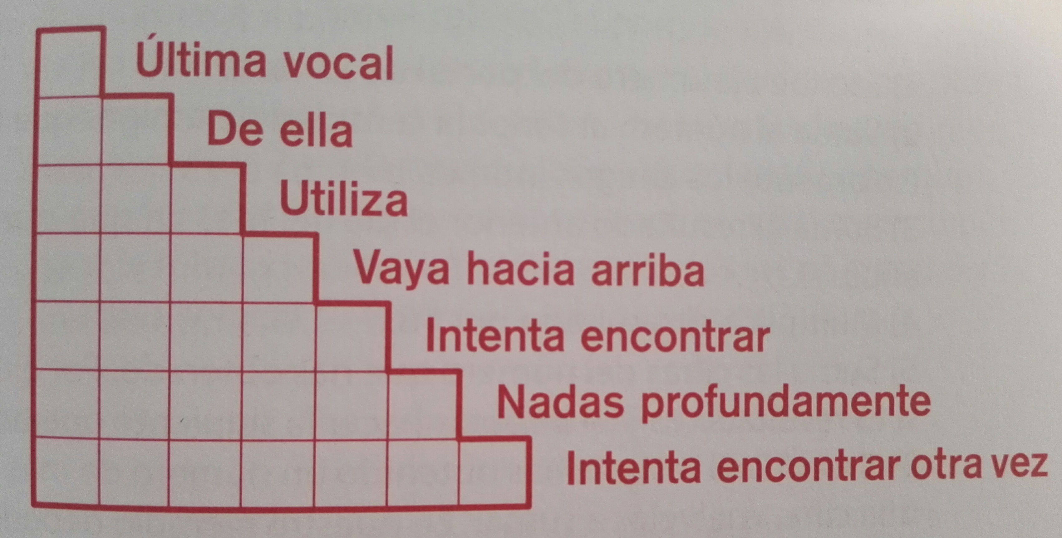 Rellena la siguiente escalera de letras, de forma que en cada escalón aparezcan las mismas letras que aparecen en el escalón anterior más otra, aunque ordenadas de forma diferente.