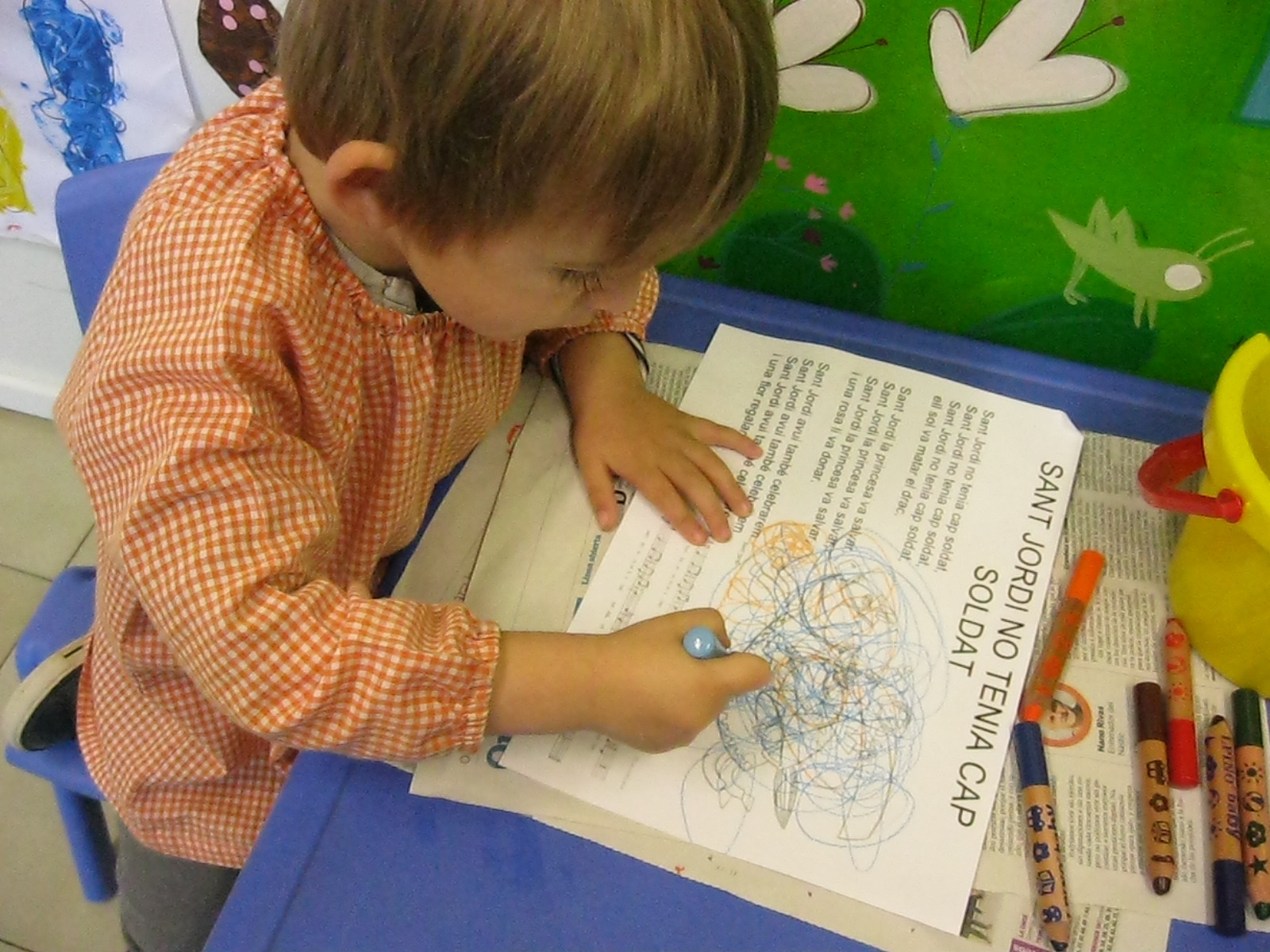 A l’hora de música hem treballat diferents cançons de la primavera, el color verd i Sant Jordi: Marieta vola vola, les petites formigues, zum zum fa l’abella, la primavera ja és aquí, les floretes, la cancó del color verd…