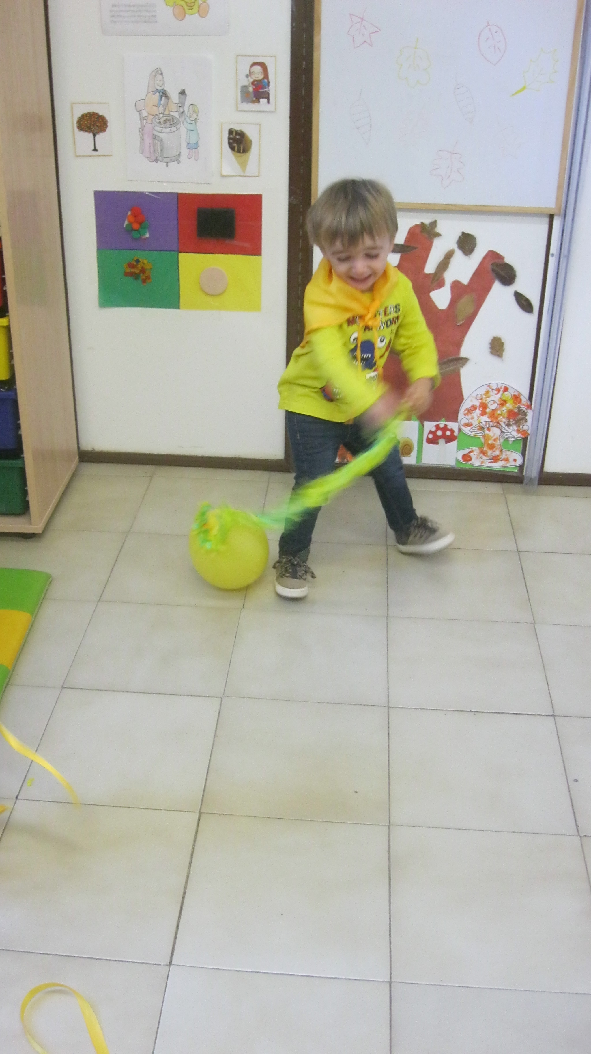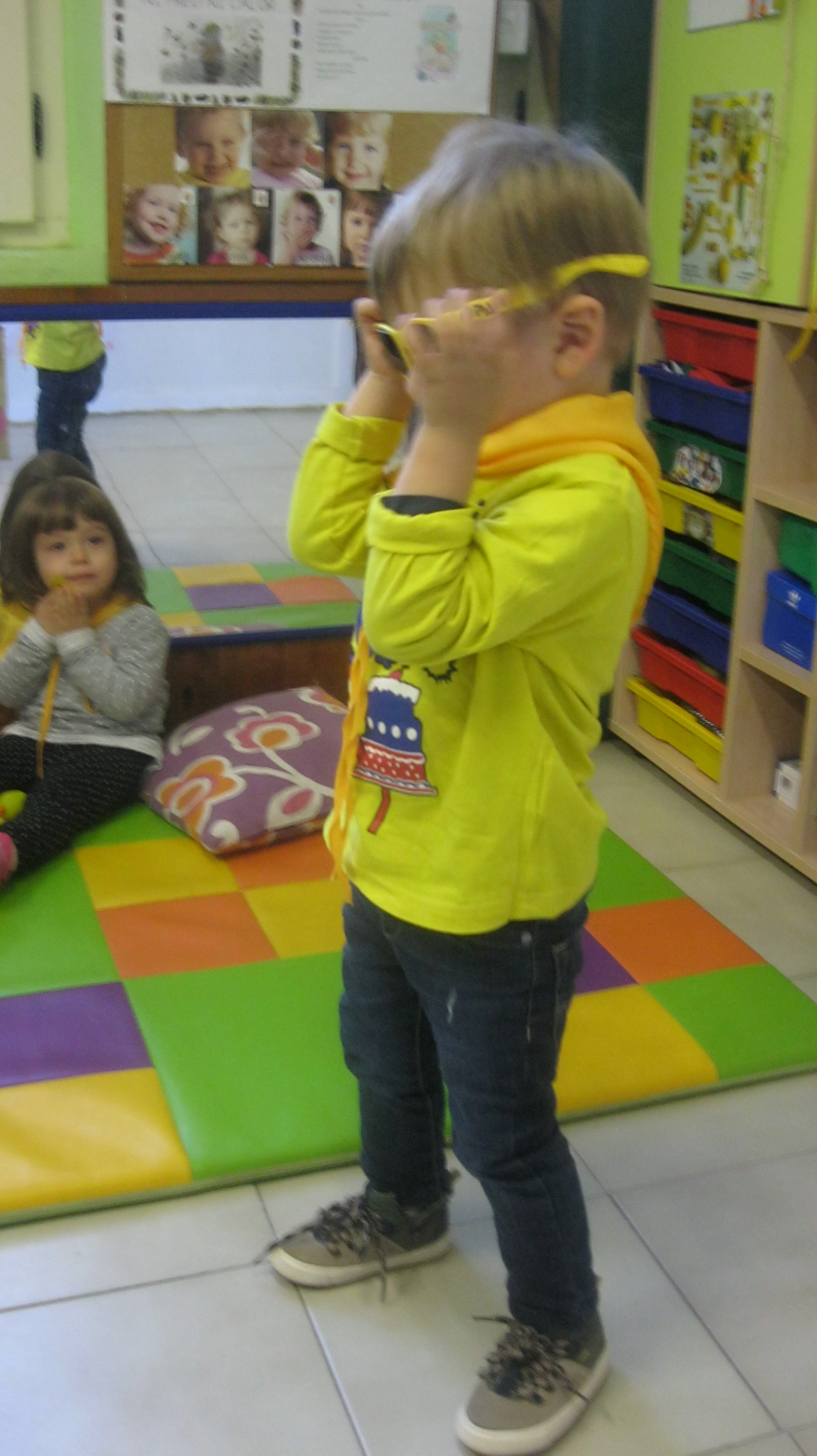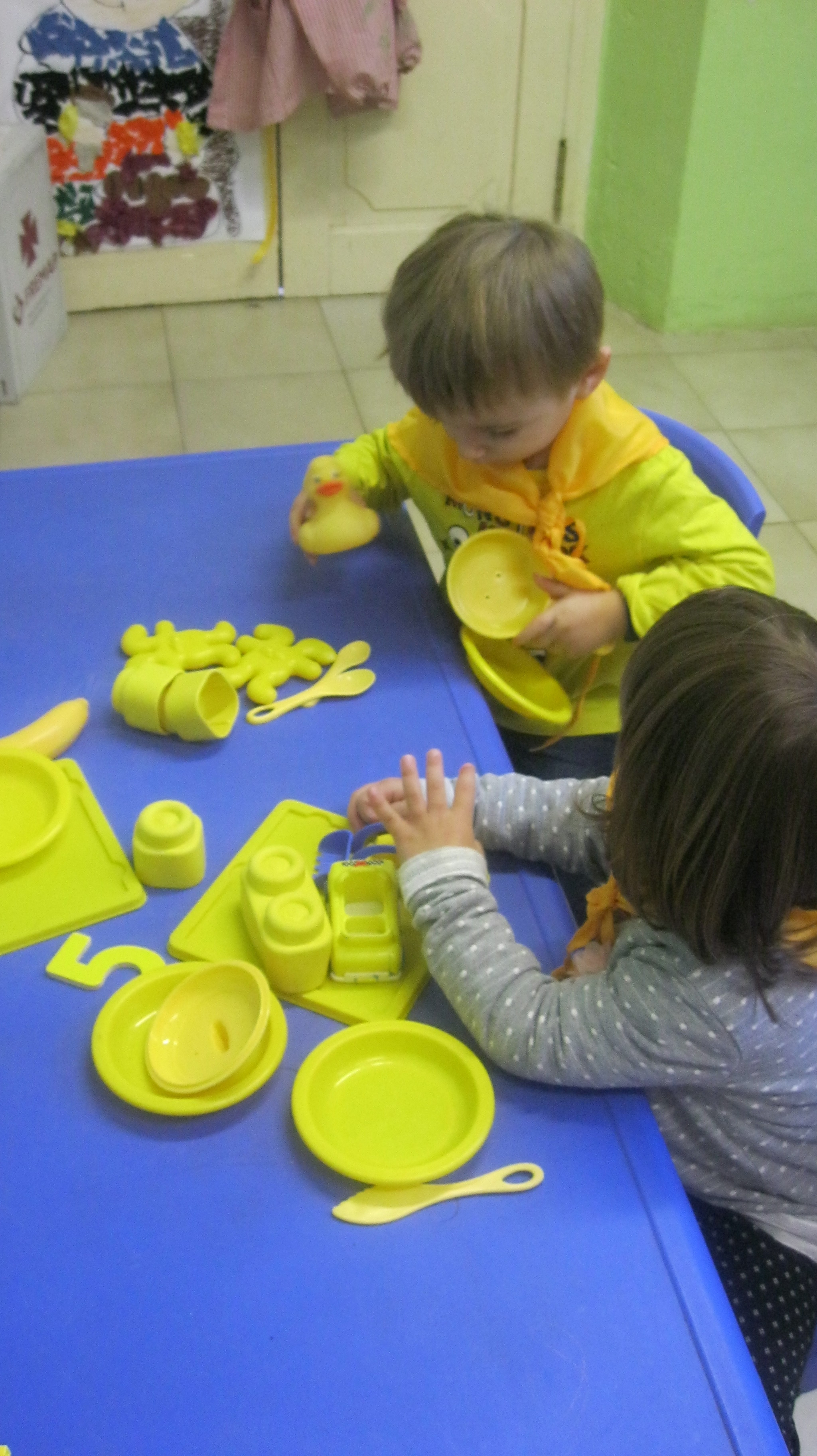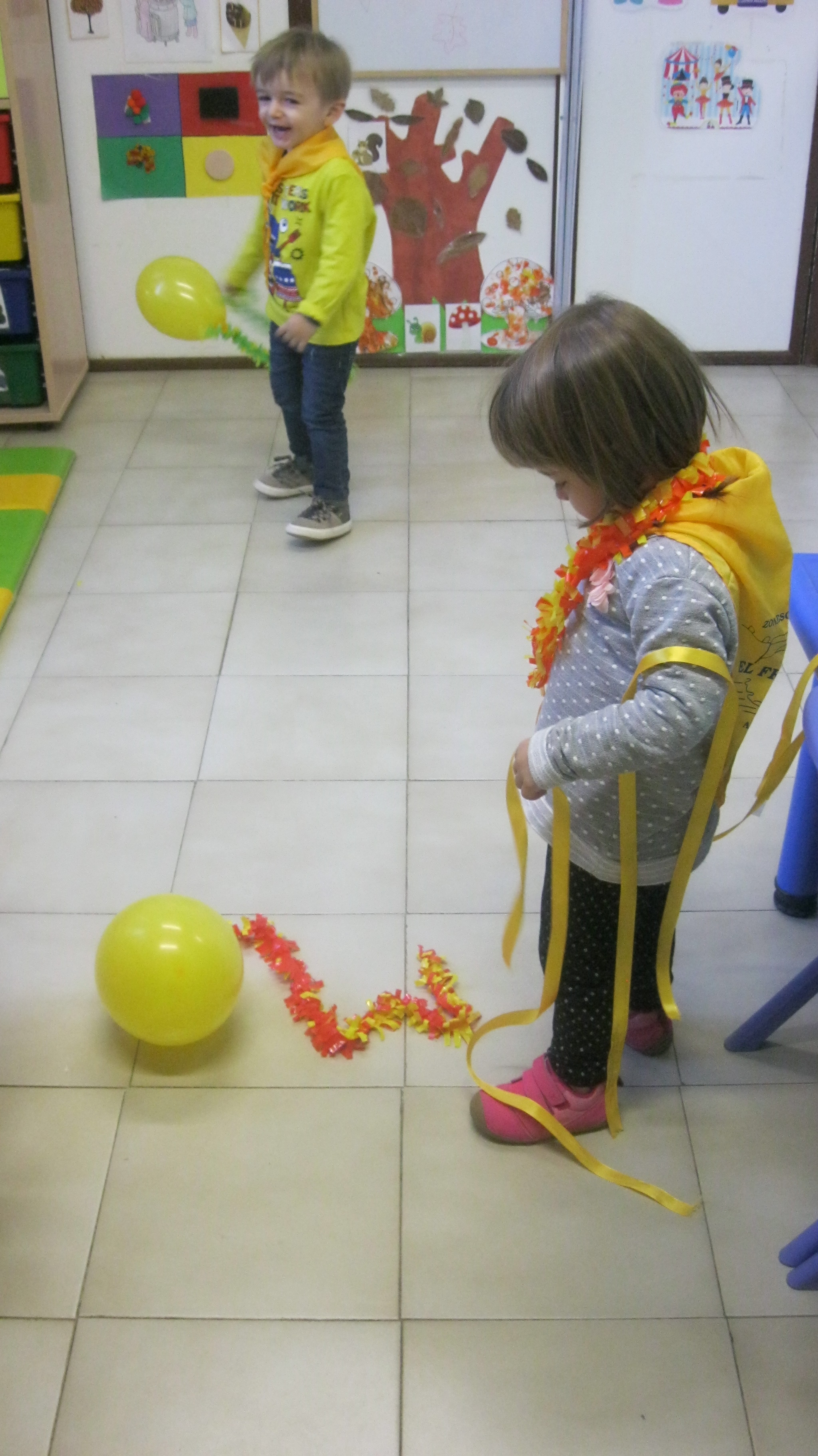 Hem portat roba de color groc, hem jugat amb coses i joguines d’aquest color i hem ballar al ritme de la cançó del color groc.