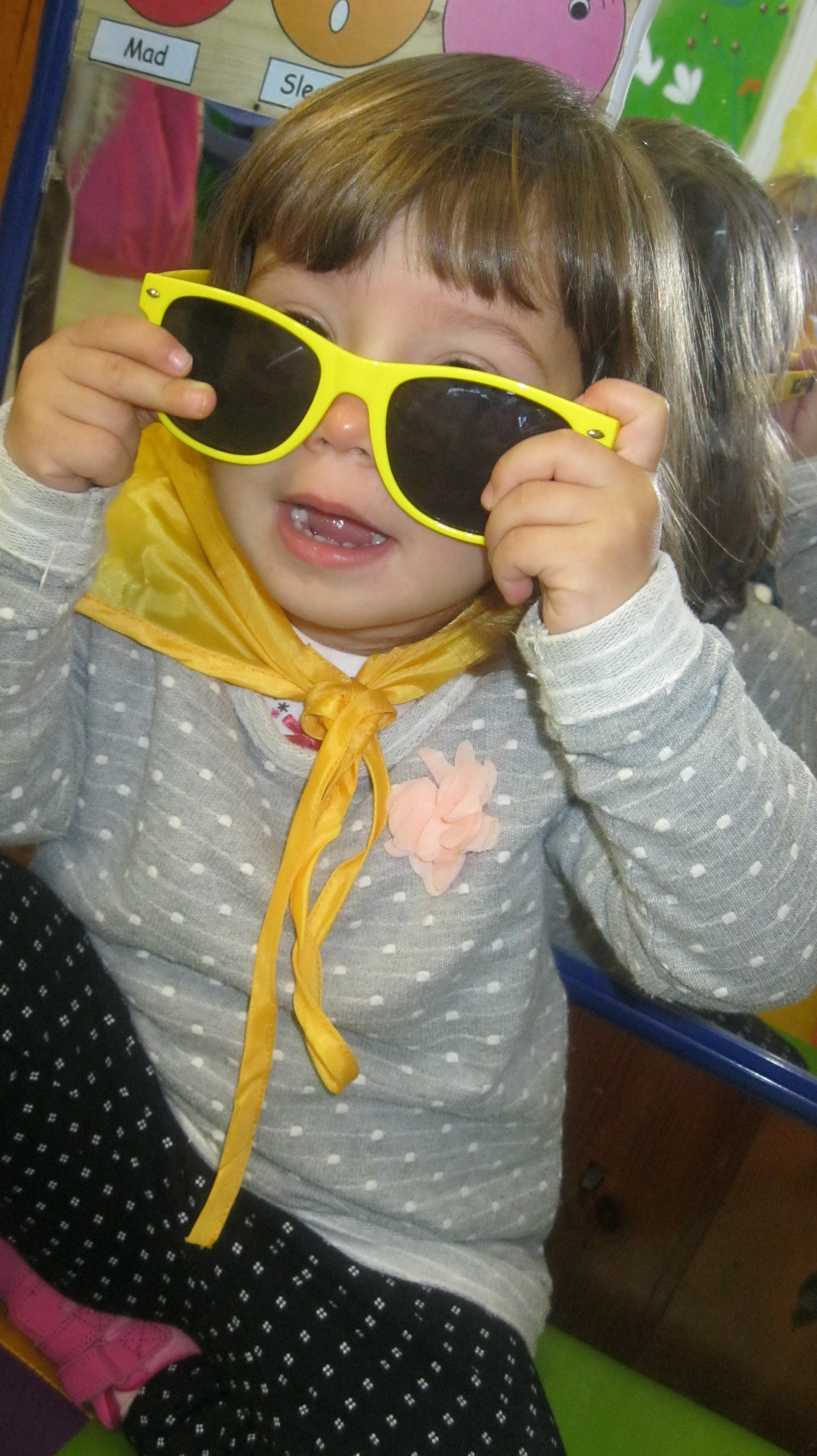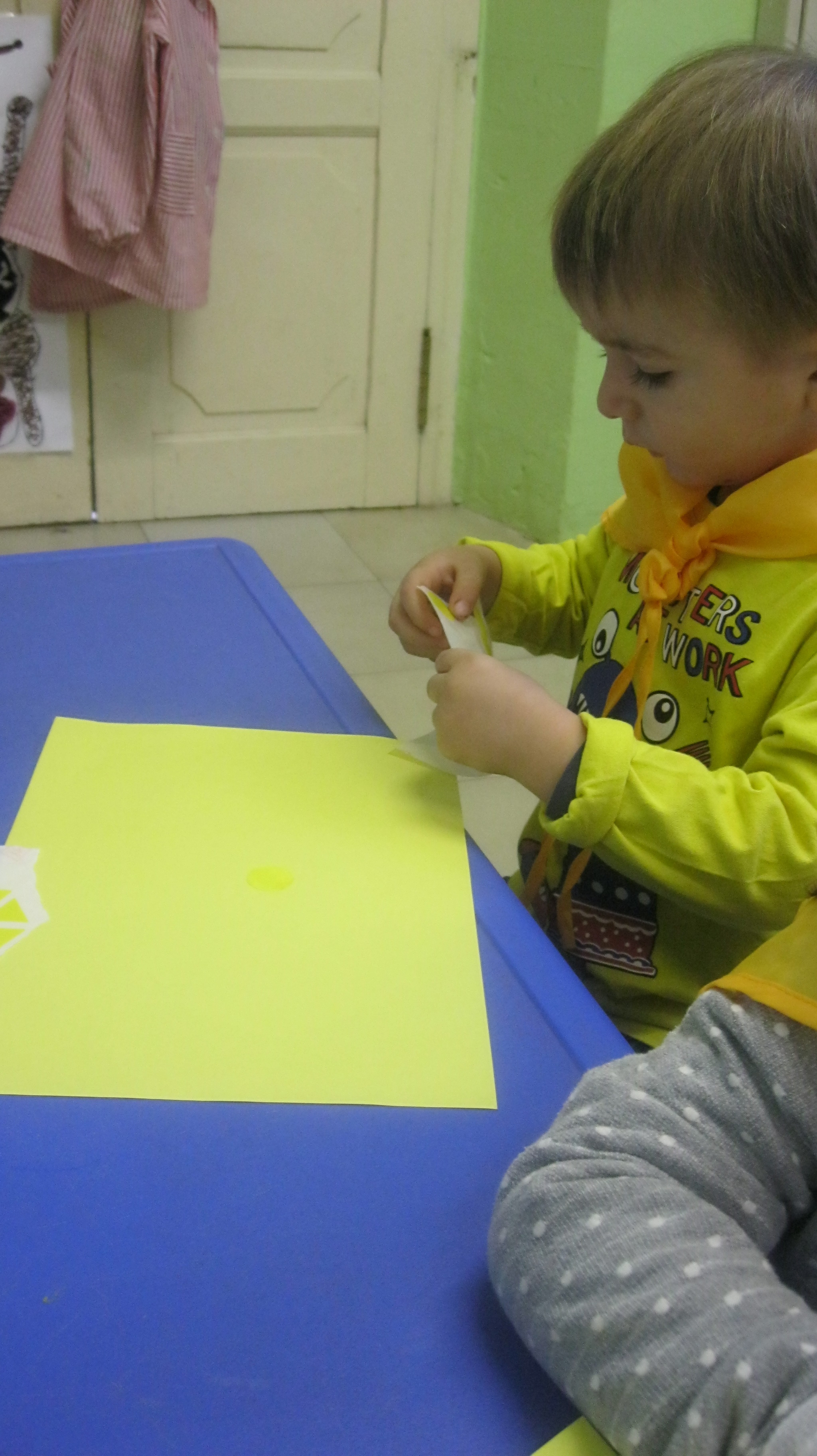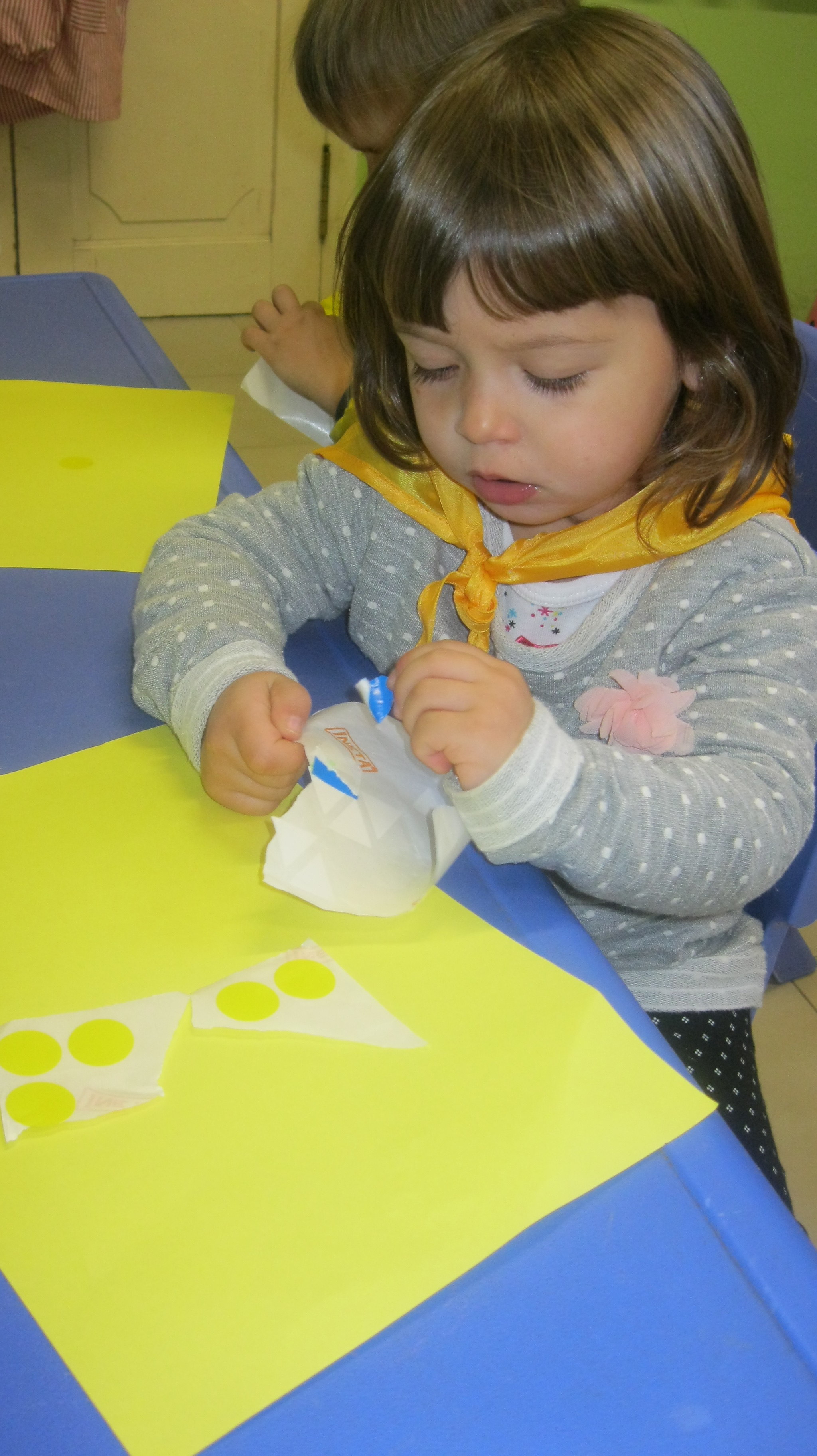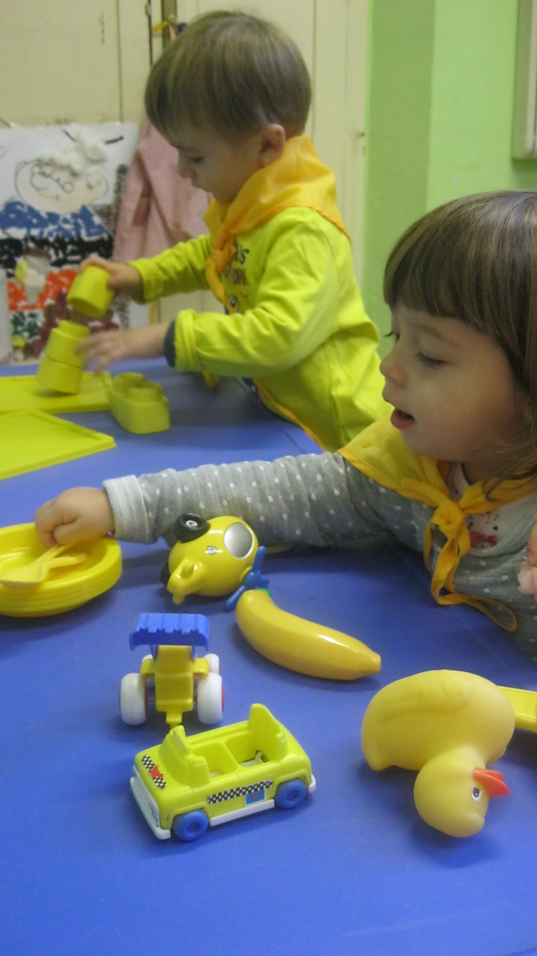 Hem portat roba de color groc, hem jugat amb coses i joguines d’aquest color i hem ballar al ritme de la cançó del color groc.