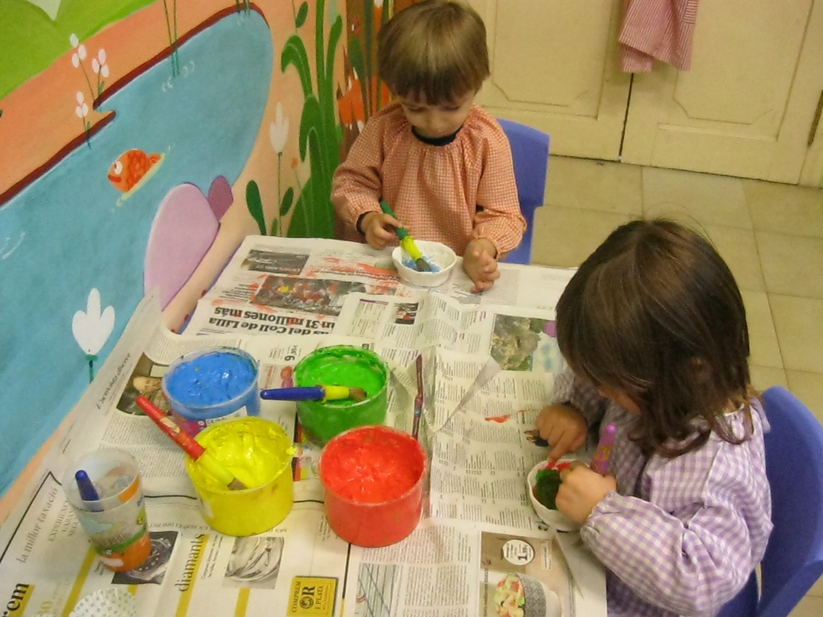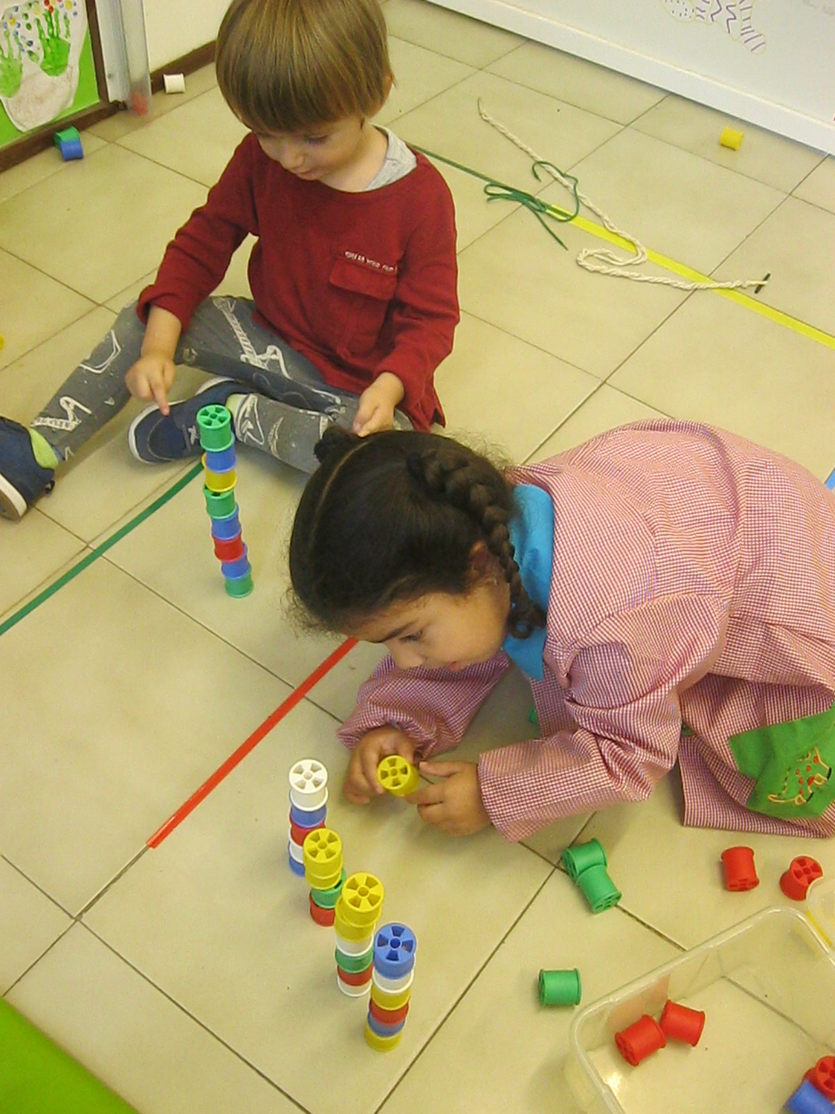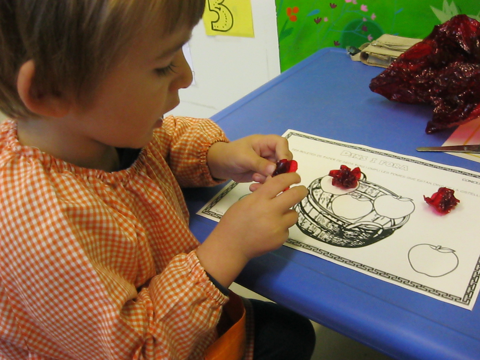 En matemàtiques estem treballant els conceptes: buit/ple, més/menys, molts/pocs.