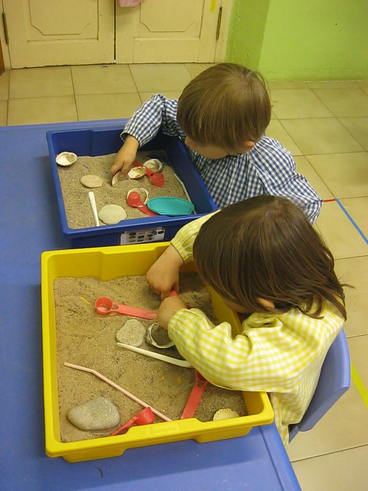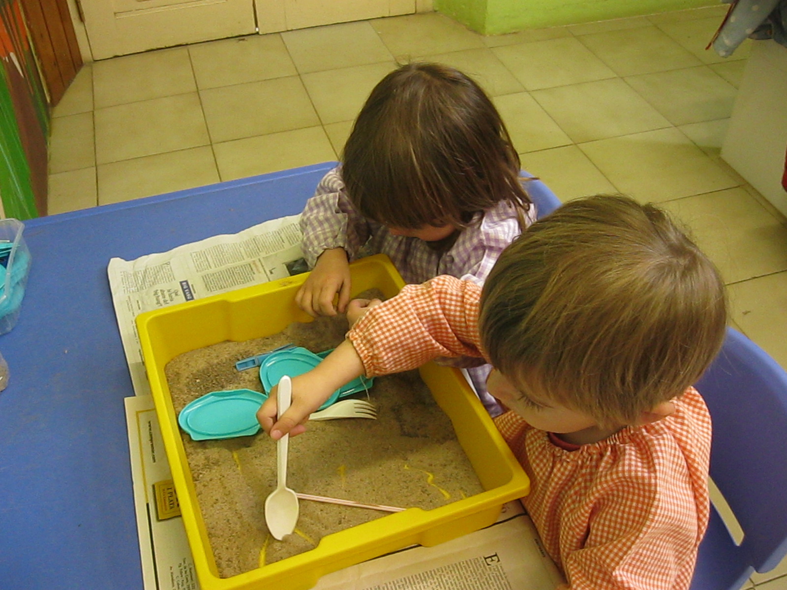 També experimentem amb la sorra dins de la classe. Ens agrada molt jugar amb la sorra!!