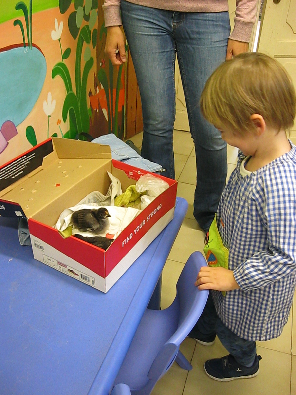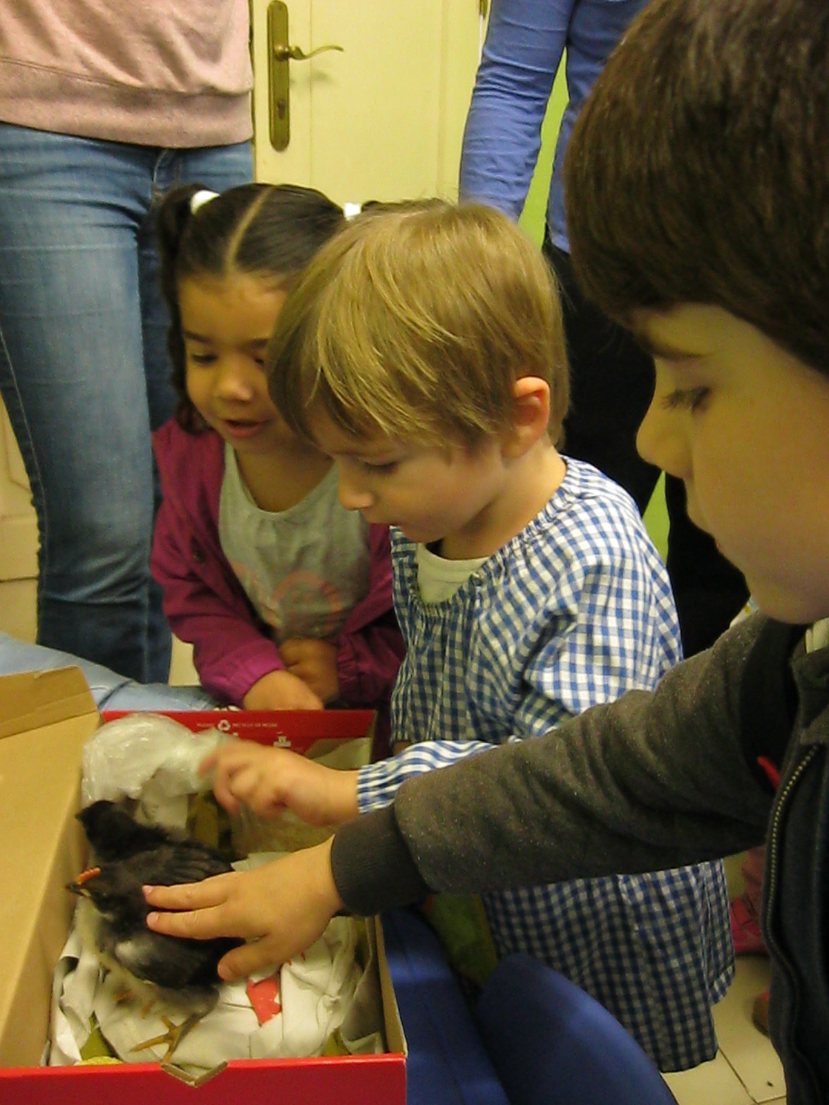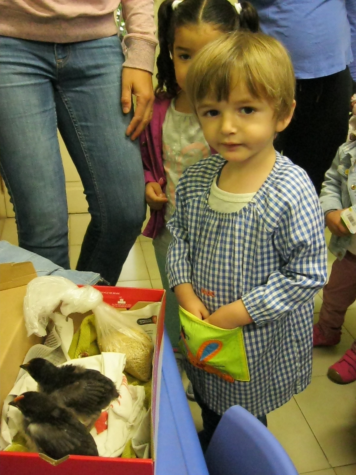 I aquest mes també hem tingut una gran sorpresa a l’escola!! Han arribat uns pollets que ens faren companya fins que acabi el curs!!