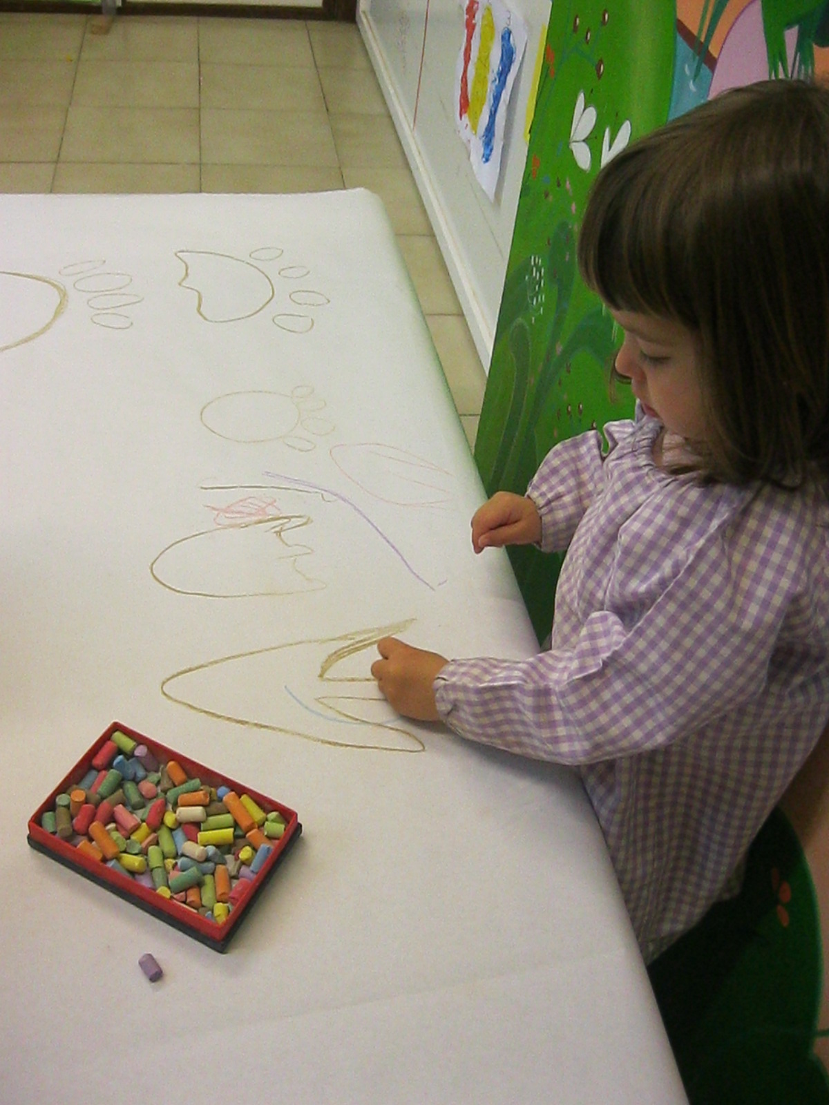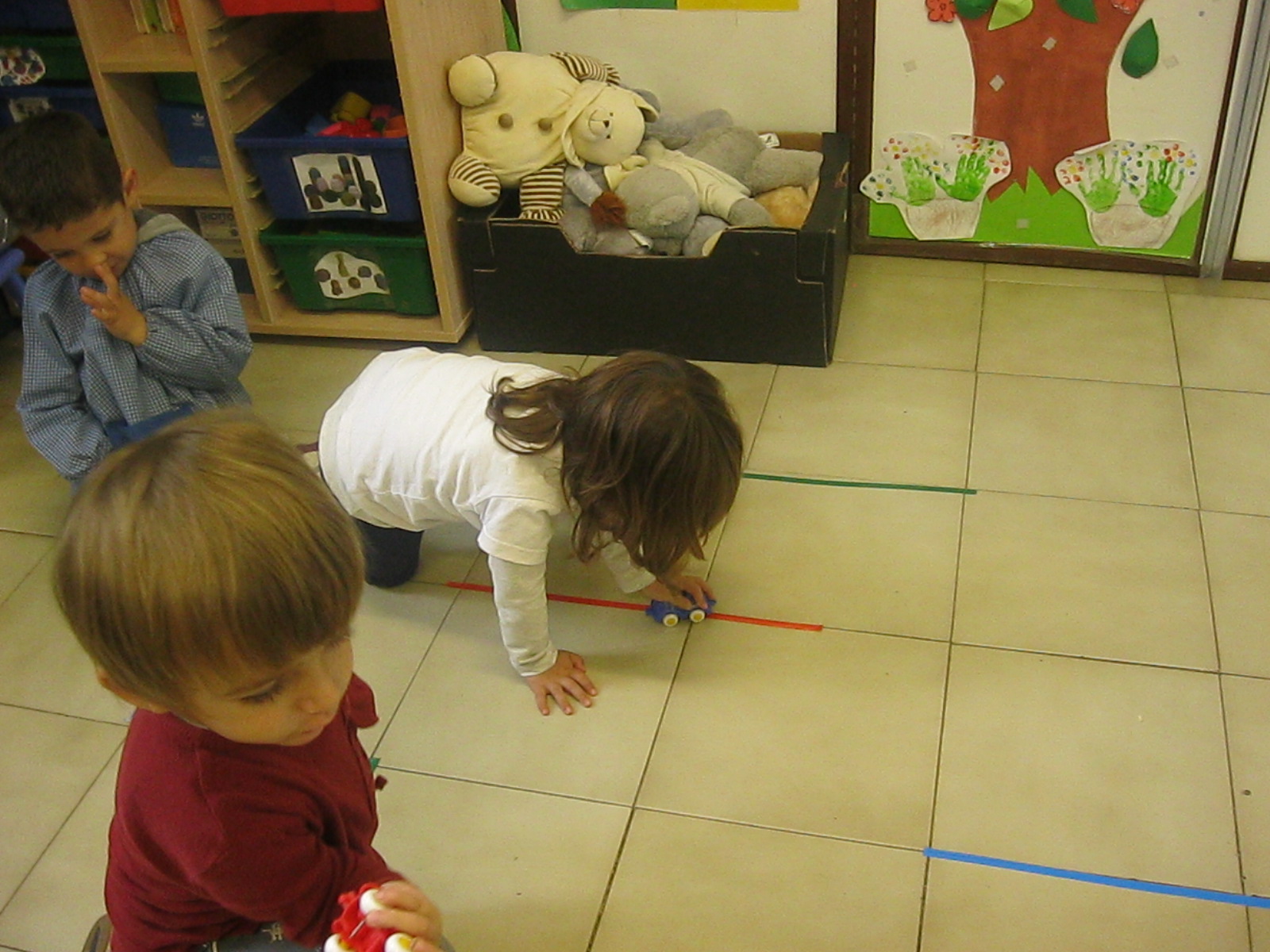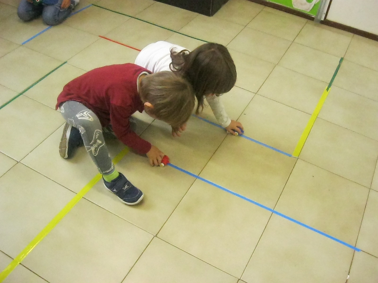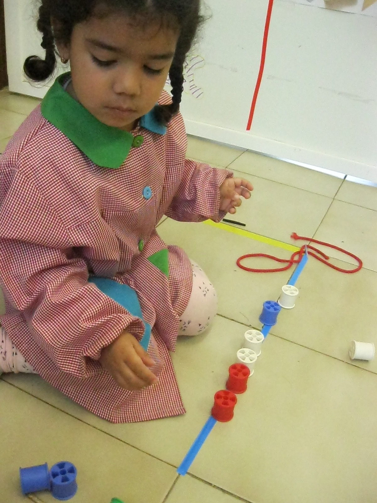 Treballem el traç horitzontal amb retolador i línees a l’espai de l’aula: