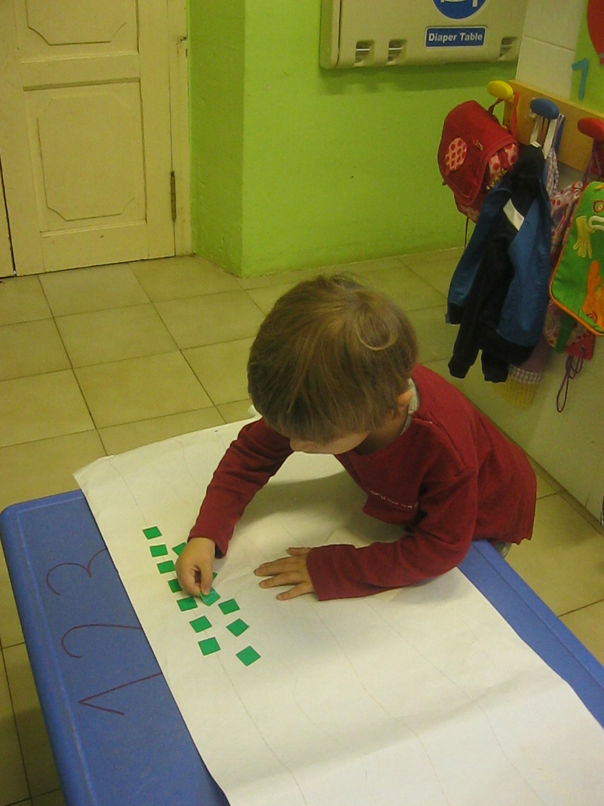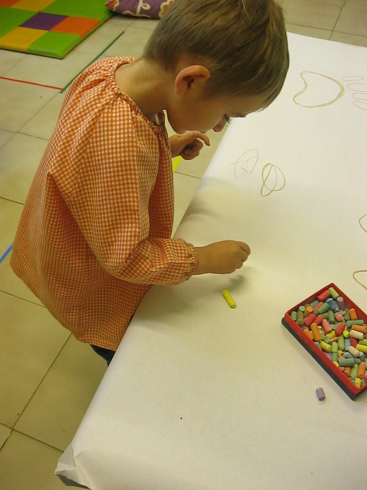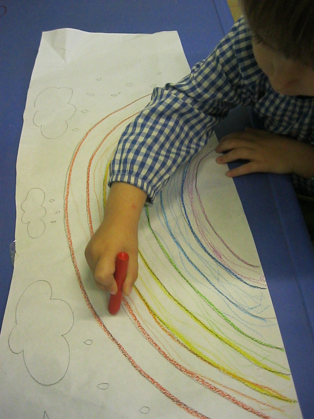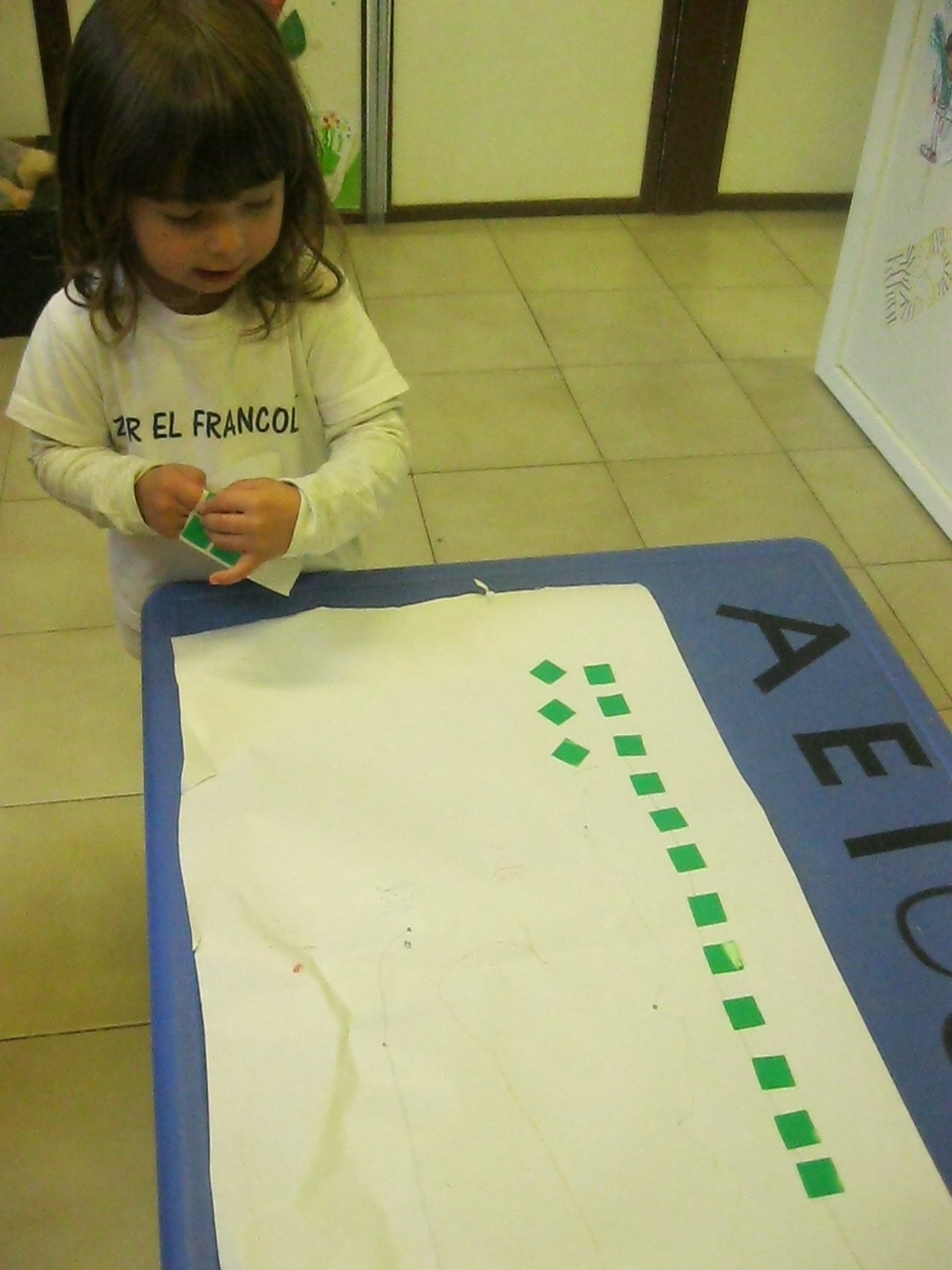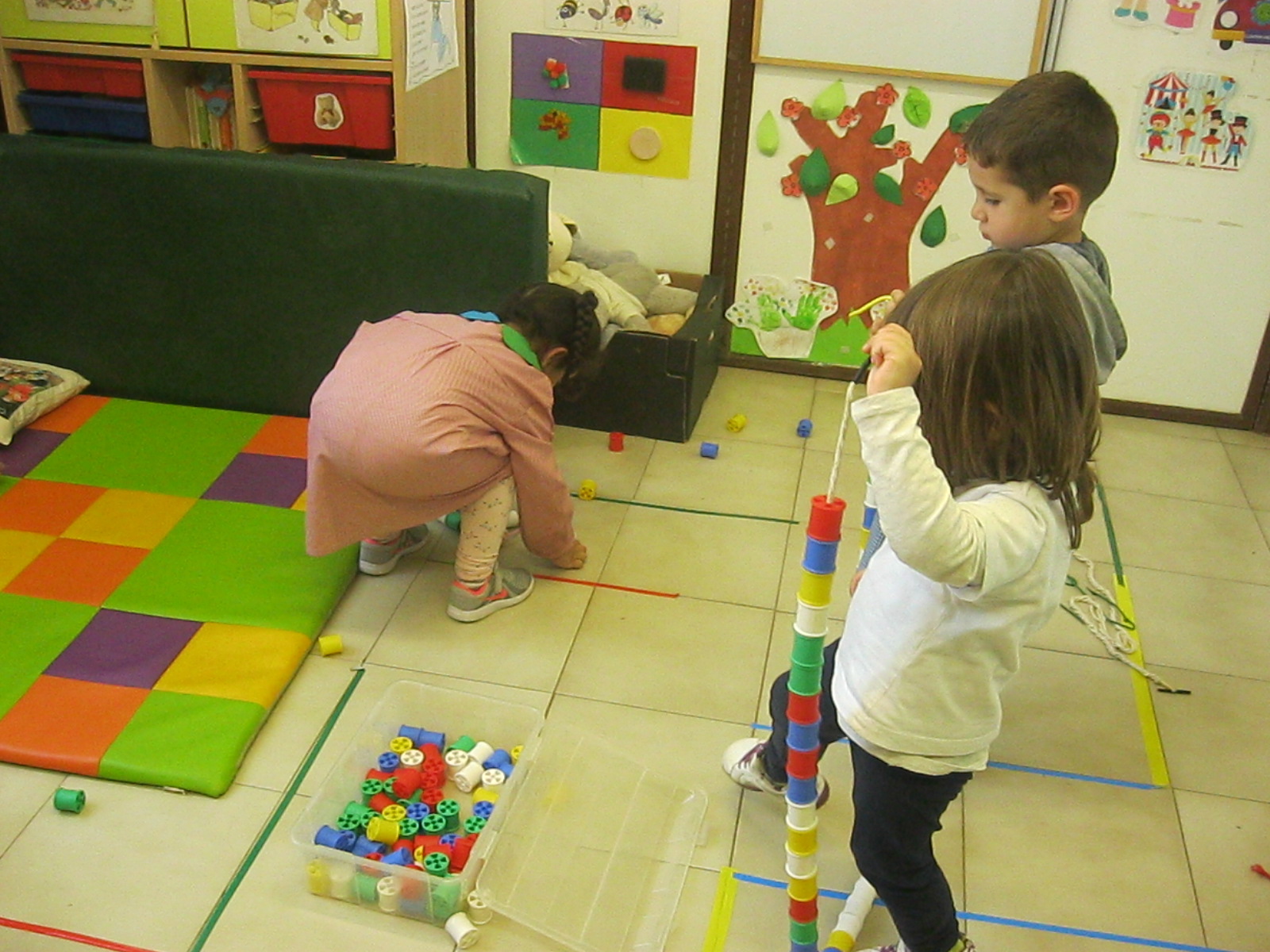 Treballem el traç horitzontal amb retolador i línees a l’espai de l’aula:
