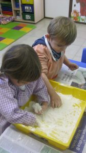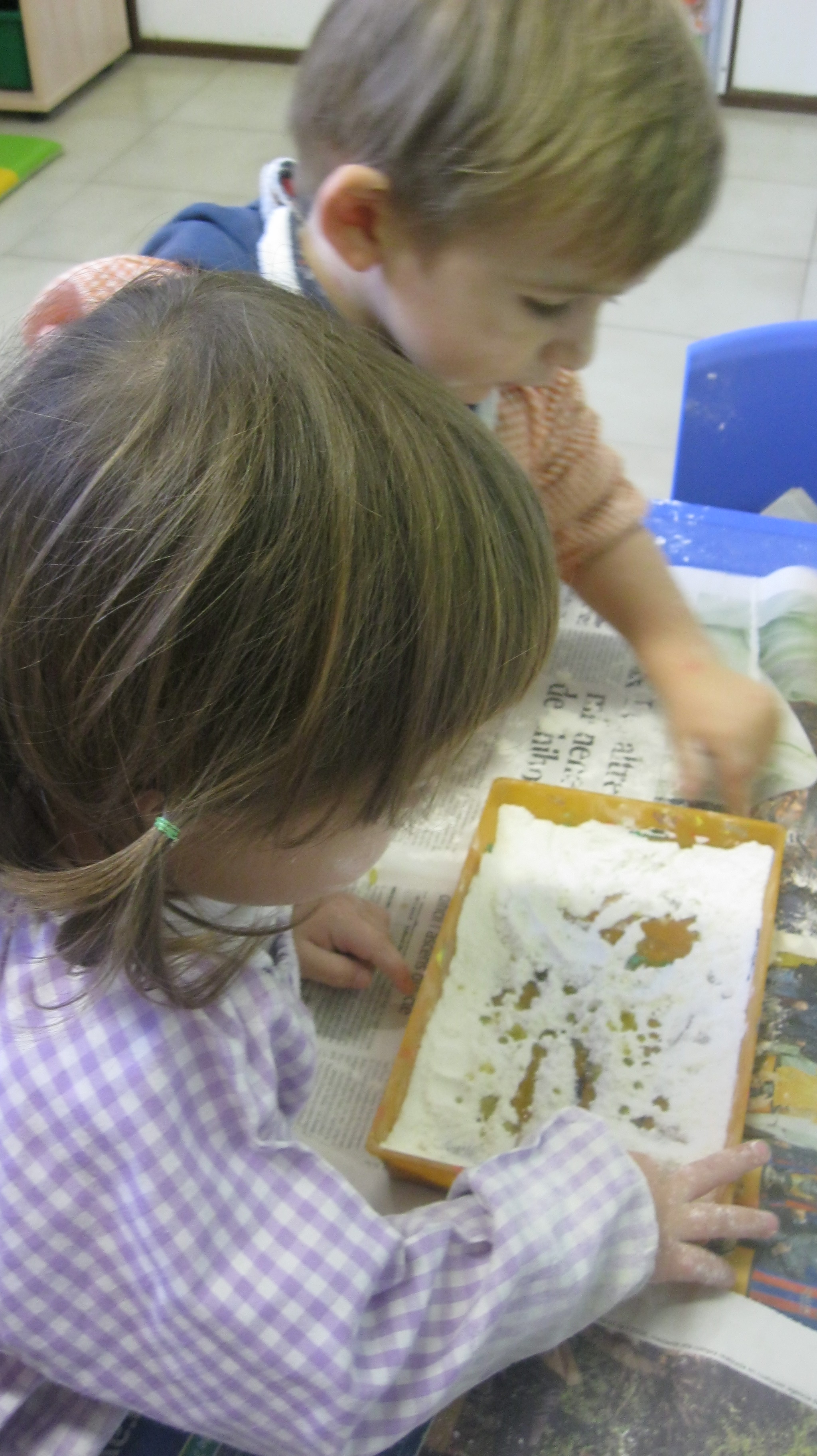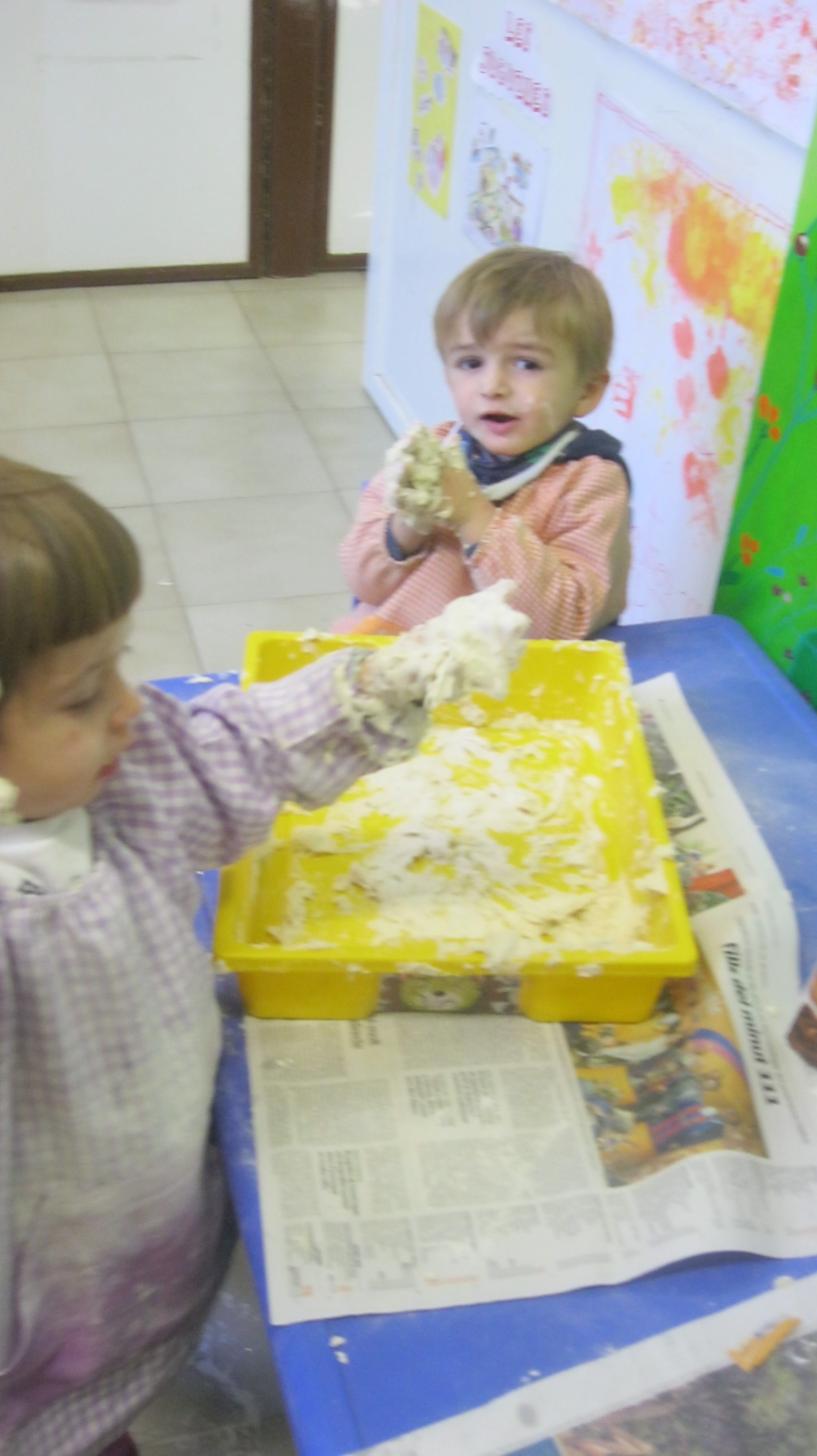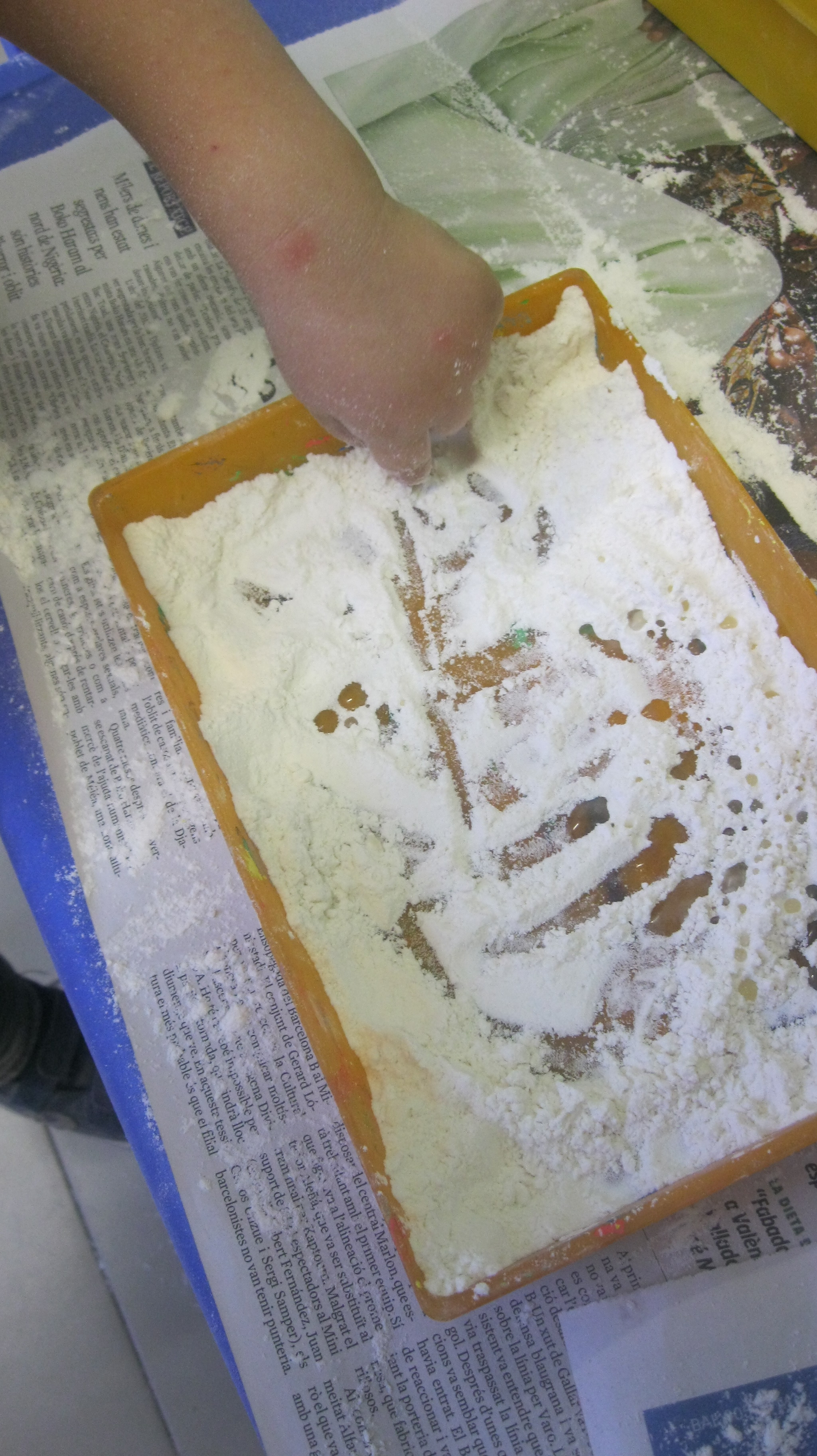 També hem experimentat amb farinetes amb aigua i sense aigua, amb gotes de colors dela tardor i diferents olors (limona, taronja, vainilla…)