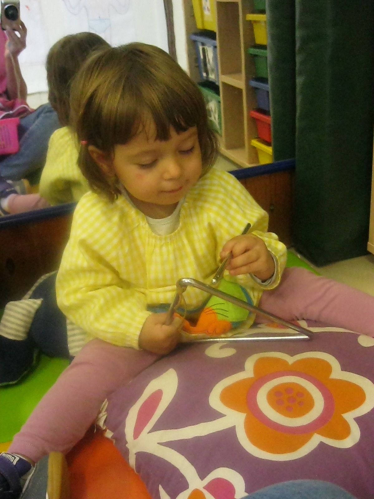 A l’hora de música hem escoltat les cançons que fem servir per començar les rutines de la classe i també les cançons del cos de la setmana anterior. A més, hem treballat el so i silenci amb els instruments amb soroll fort i fluix.