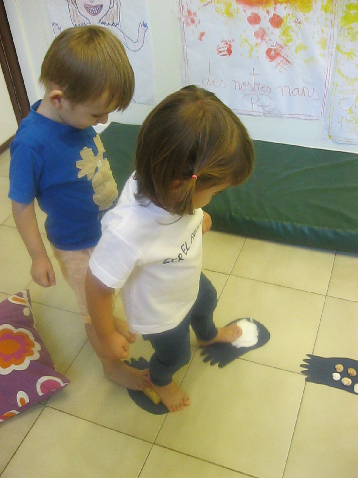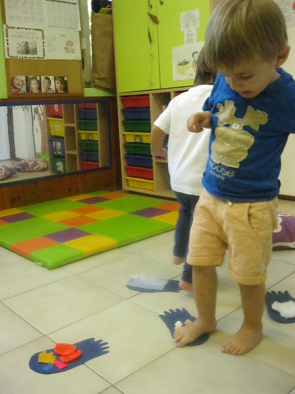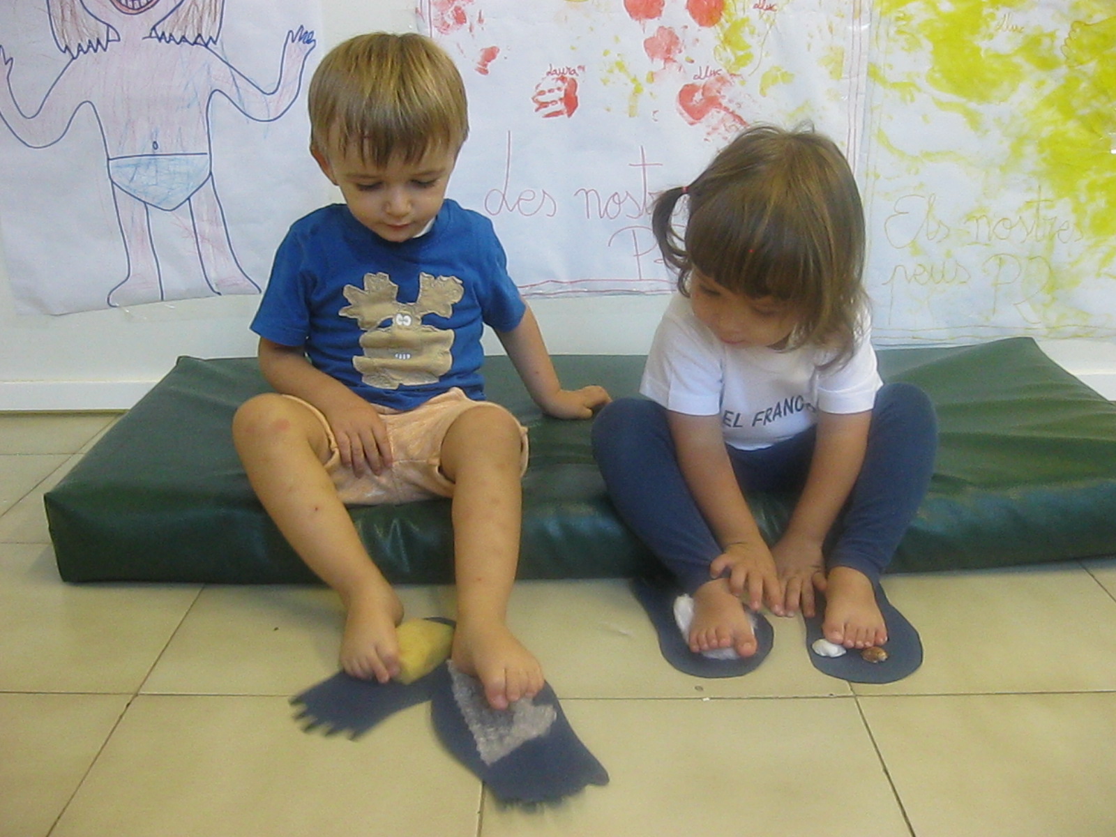 I per últim, a l’hora de psicomotricitat, hem fet circuits, hem caminat damunt de diferents textures i a més, hem fet pessigolles amb cotó fluix. Hem gaudit molt!!