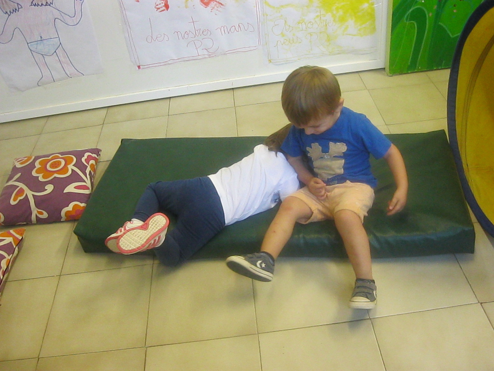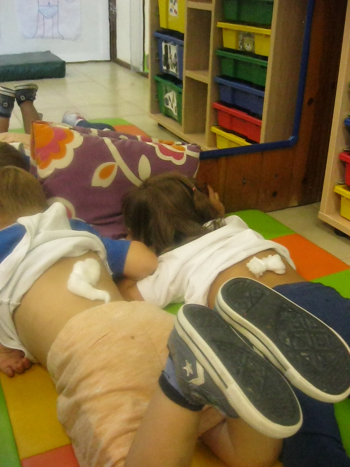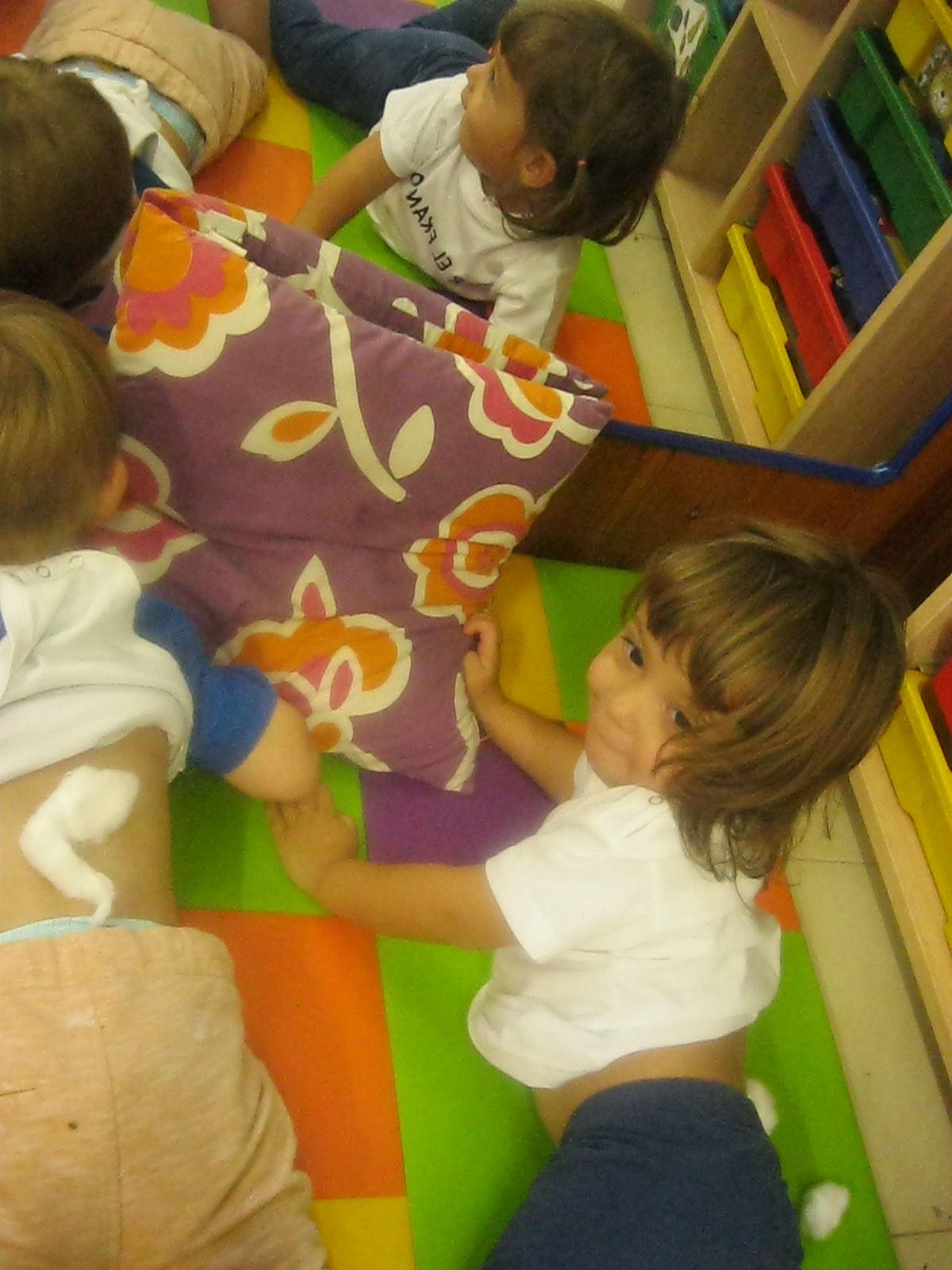 I per últim, a l’hora de psicomotricitat, hem fet circuits, hem caminat damunt de diferents textures i a més, hem fet pessigolles amb cotó fluix. Hem gaudit molt!!