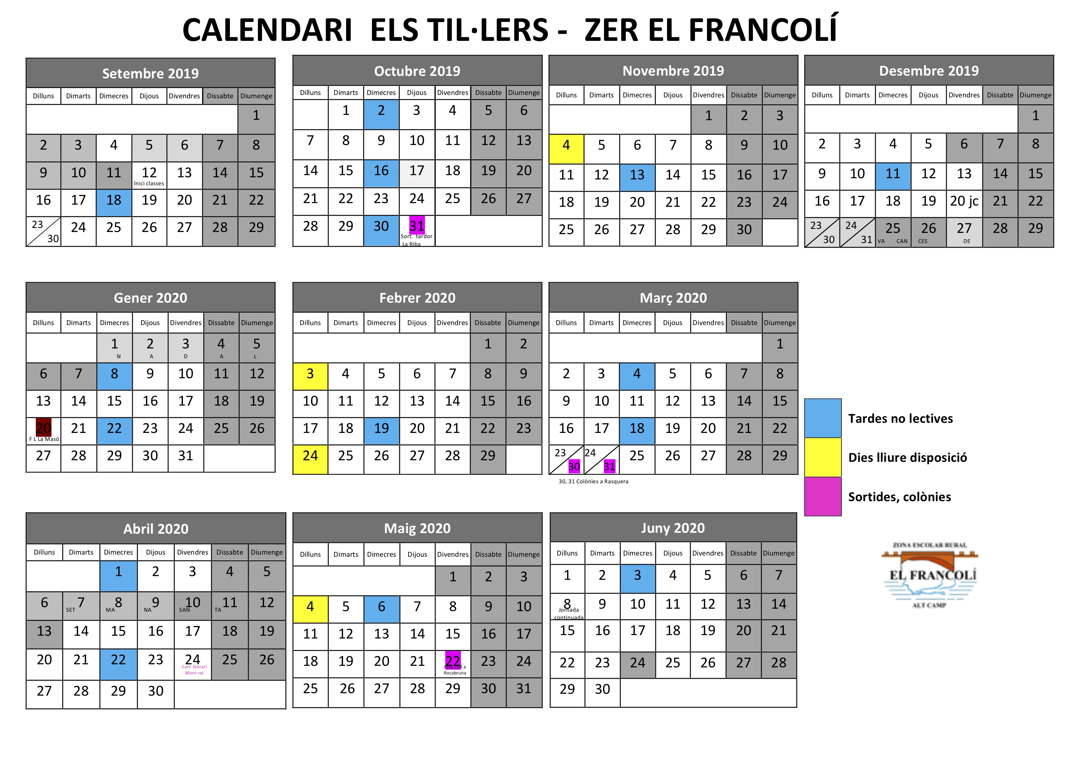 CALENDARI ELS TIL·LERS 19-20 Famílies (per imprimir)