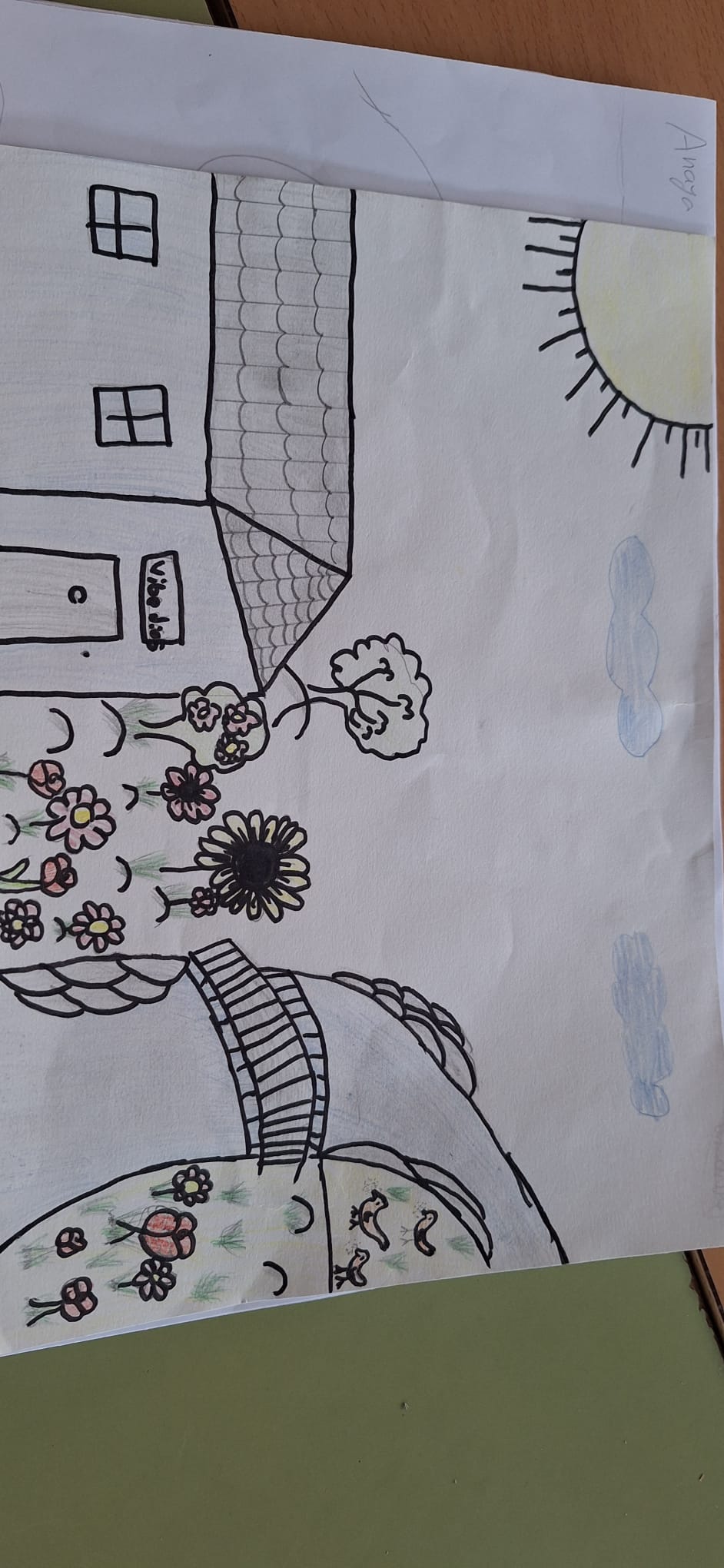 Dibuixos on representen com creien que era el paisatge on vivia la María.