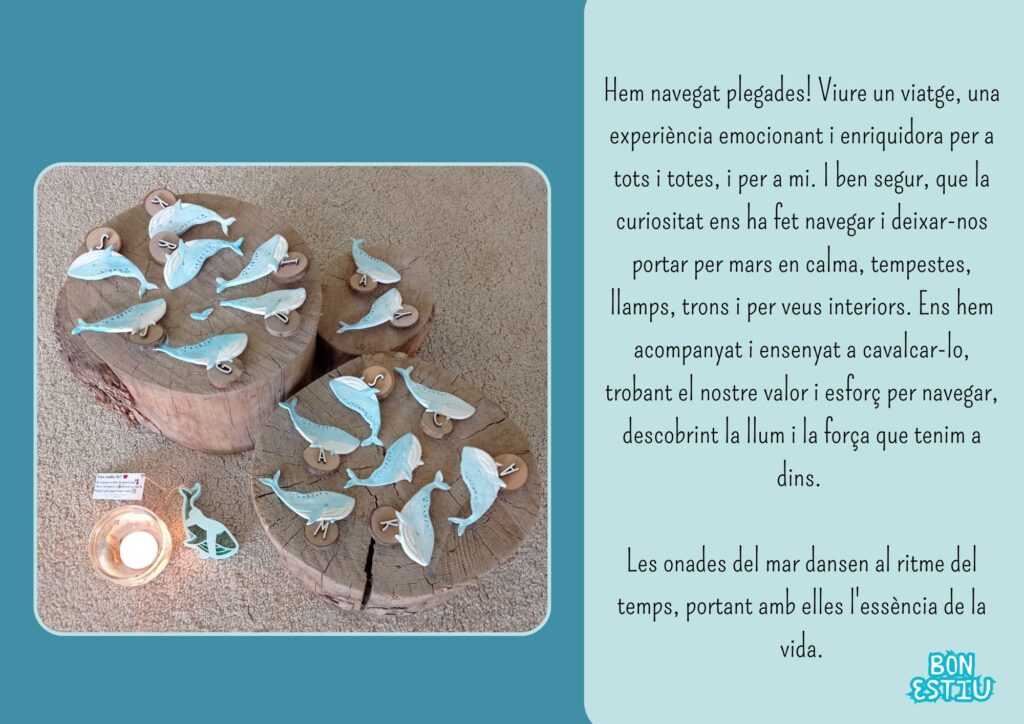 Fascinat per aquestes criatures, van voler saber més sobre elles i van plantejar moltes preguntes interessants. La primera; “Com és, què pesant tant i, no s’enfonsen…?” Aquesta curiositat va encendre una espurna a l’aula, que ens va portar a iniciar un projecte educatiu sobre les balenes, els oceans, la sostenibilitat i la cura del planeta. A través d’aquesta situació d’aprenentatge, vam explorar un nou món ple de vida.