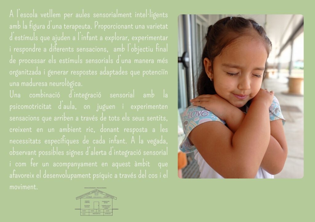 “Facilita que el Sistema Nerviós Central aprengui a registrar i a modular amb una intensitat adequada la informació sensorial que rep del cos i de l’entorn. A més a més, ajuda a desenvolupar la correcta interpretació de la informació sensorial, per tal de poder aprendre de les experiències” adequada la informació sensorial que rep del cos i de l’entorn. A més a més, ajuda a desenvolupar la correcta interpretació de la informació sensorial, per tal de poder aprendre de les experiències”.*