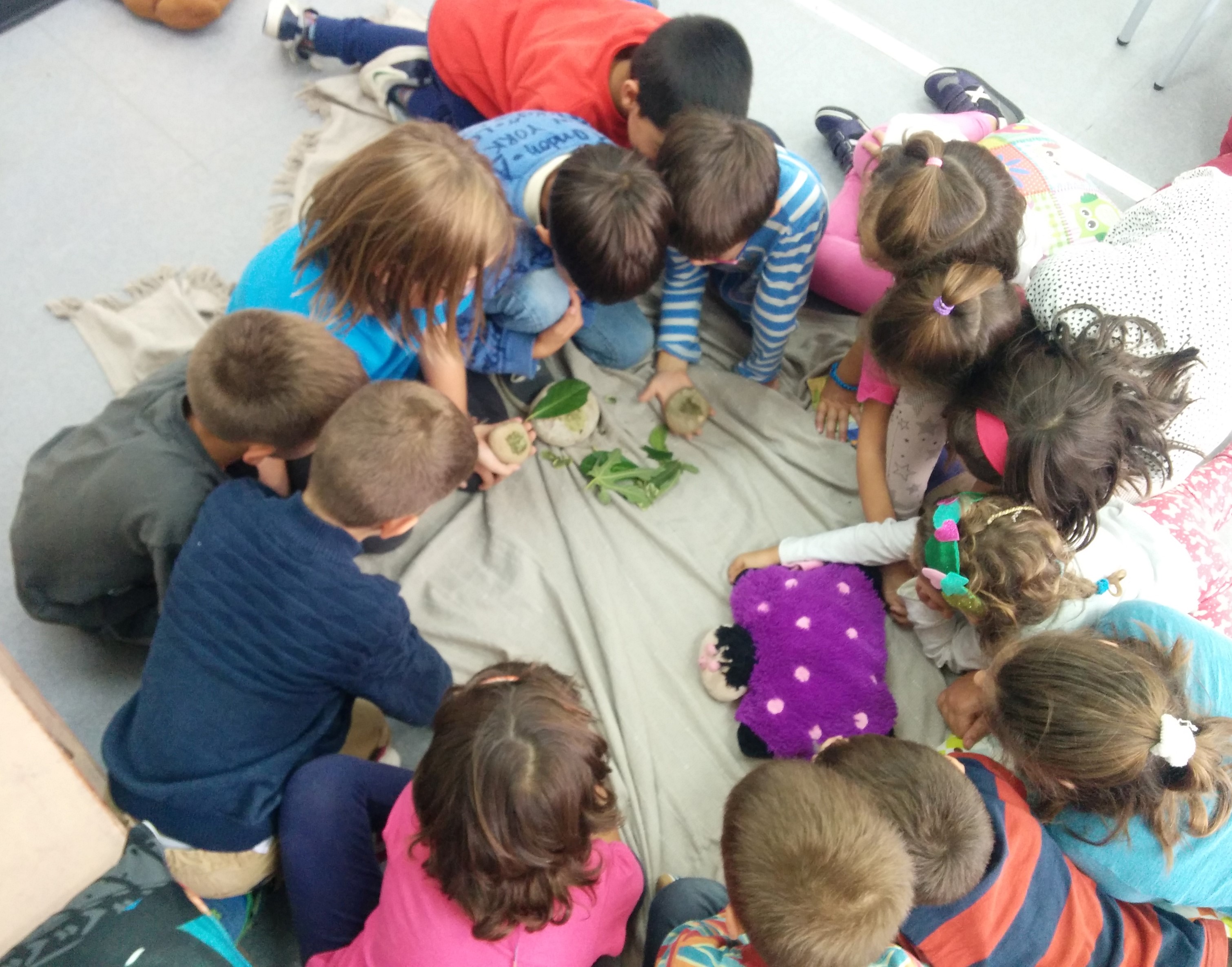 - Triturant fulles per a fer pigments naturals