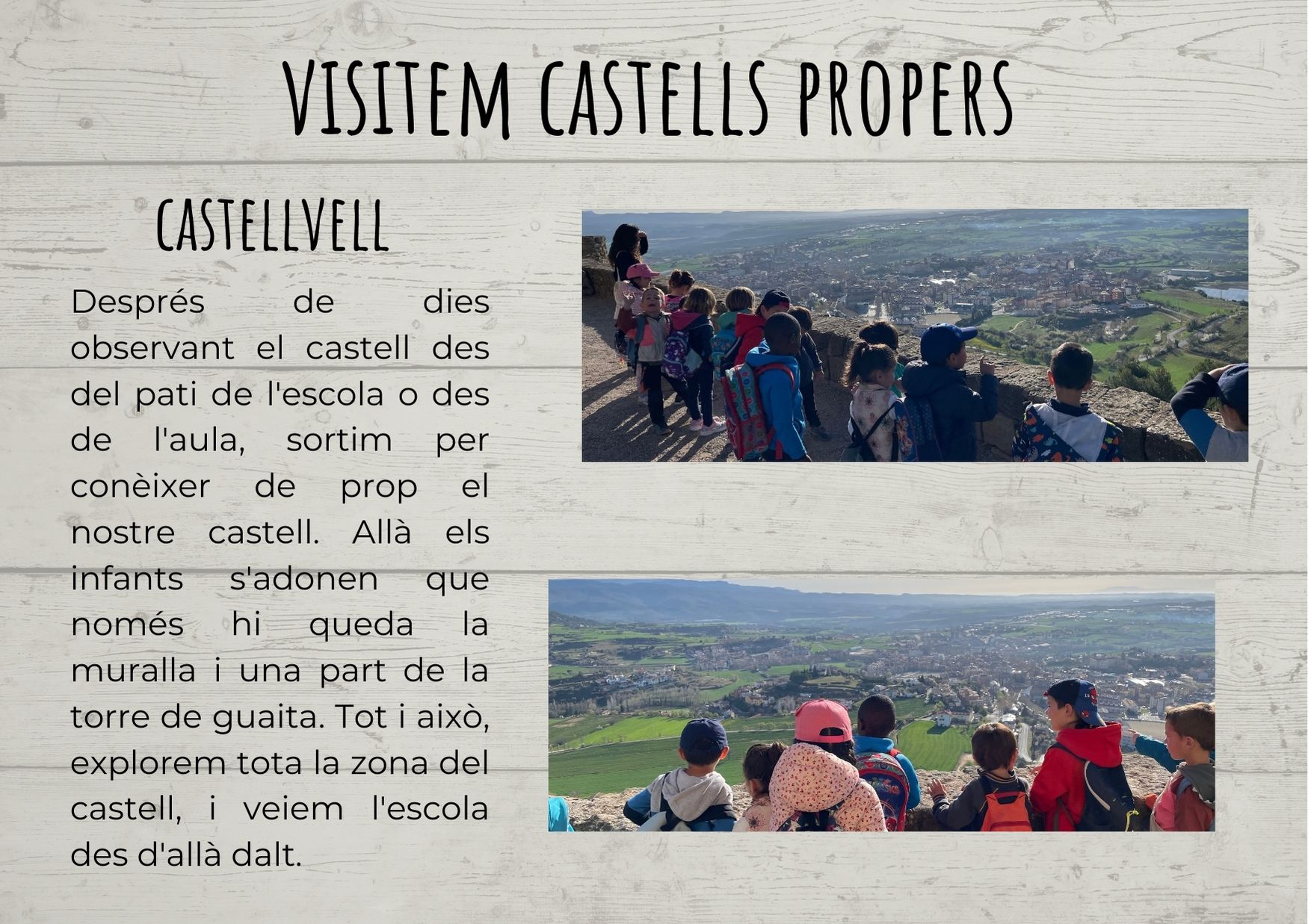 L’interès dels infants pels castells, ha permès als alumnes de Petits B, conèixer i indagar més sobre l’època en què van ser construïts, essent els protagonistes actius del seu aprenentatge.