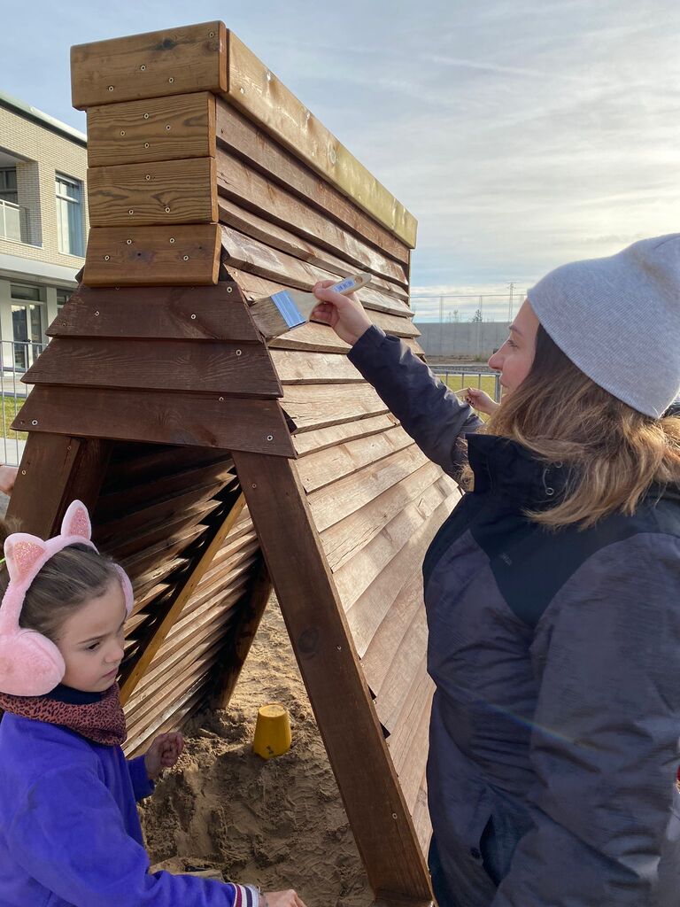 Amb el pas del temps, s’adonen com els tipis del sorral, les jardineres, els gronxadors… han anat guanyat i intensificant el seu color, ara fins i tot gairebé semblen nous. I és que a toc de pinzell, amb suavitat, amb delicadesa, i amb dosis de cura i passió, amb voluntat, amb esforç…s’aconsegueix poc a poc fer una gran feina. I és què plegats i units es pot fins i tot moure una muntanya. Gràcies famílies per la vostra dedicació!