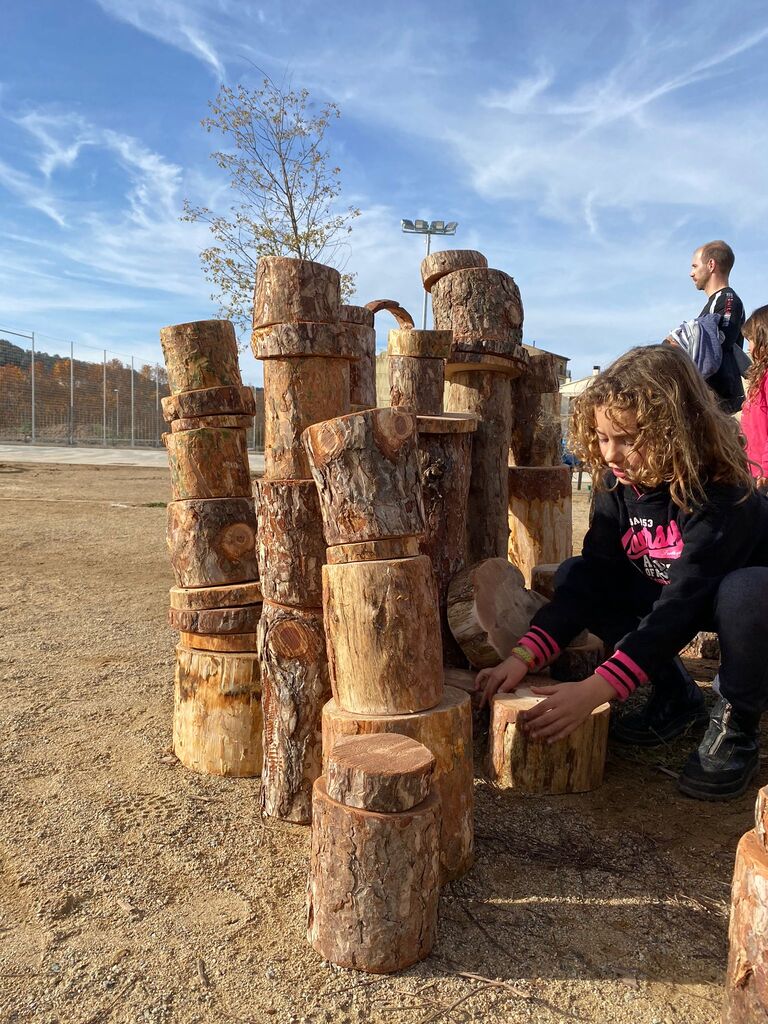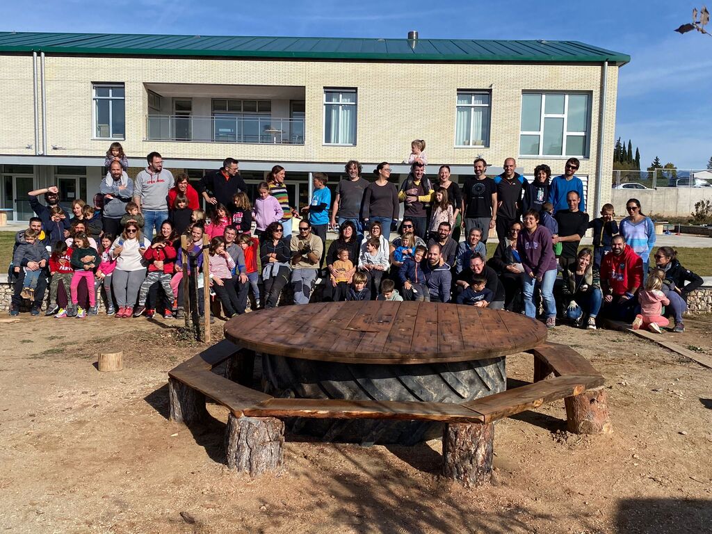 Avui diumenge, el primer bri d’aire fresc que es respira, que acarona els rostres d’alguns infants i famílies és el de l’entorn del pati de l’escola. Una brisa suau acompanyada d’un petit i encisador cant d’ocellets que tafaners voletegen per les immediateses del pati. Alcen el seu vol, amb la curiositat d’observar com uns petits éssers salten, corren, juguen, ajuden…a construir i poc a poc a anar donant forma a un pati fins aleshores poc naturalitzat. Vist a ull d’ocell, una munió de petites personetes va avançant plegades en fer del pati de l’escola, un espai amb diferents propostes. Bocabadats, observen com poc a poc es va donant forma a unes taules, que acolliran la mainada amb jocs més aviat tranquils, simplement pel fet d’establir -hi una trobada i fer-la petar o fins i tot embadalir-se dins d’una història en la que es submergiran com autèntics protagonistes.