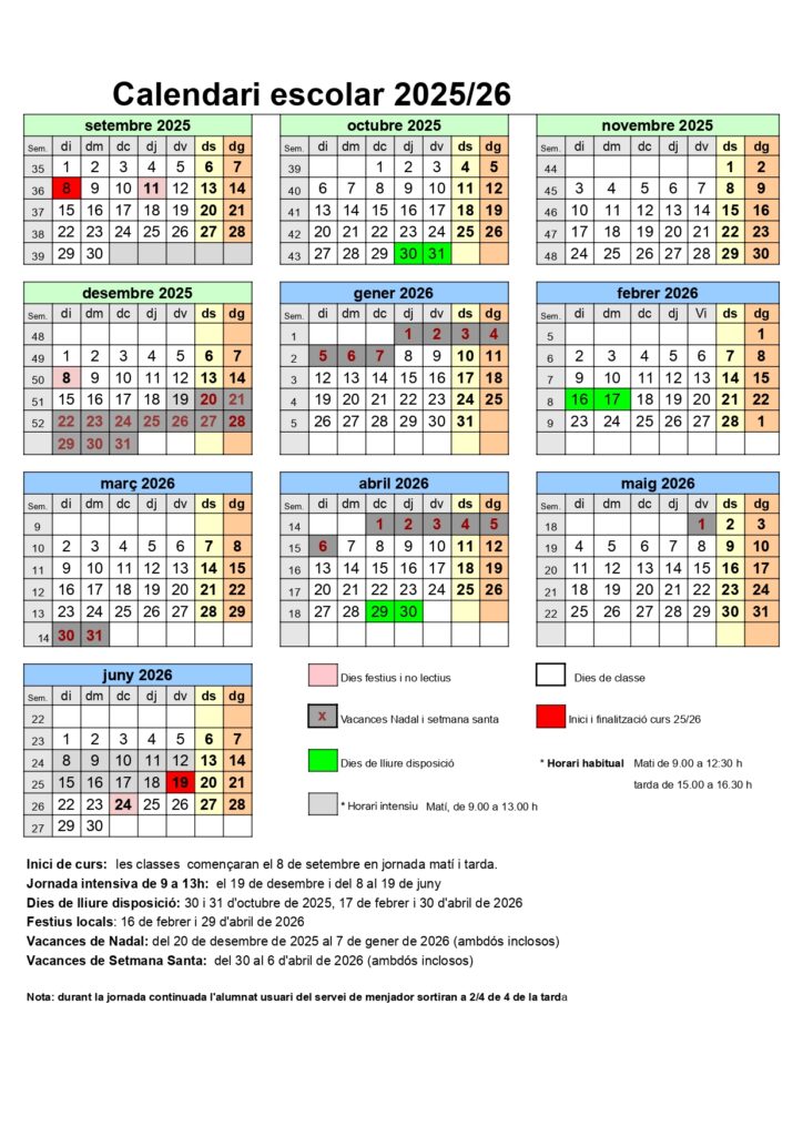 Calendari del curs 25/26