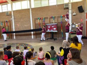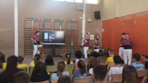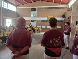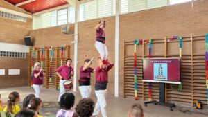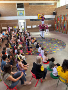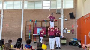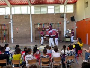 Dimecres i divendres de la setmana passada, vam tenir la sort de comptar amb la visita d’una família castellera de l’escola que ens ha apropat, de manera vivencial i molt propera, al fascinant món dels castells. El dimecres a la tarda, l’activitat es va dur a terme amb l’alumnat d’Educació Infantil i Cicle Inicial, i divendres va continuar amb Cicle Mitjà i Cicle Superior, permetent que tot el centre pugui gaudir d’aquesta experiència.