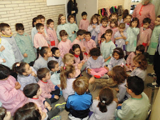 Ahir abans de sortir al pati vam veure que el tió ja havia arribat a la nostra escola!!! Ara li donarem de menjar cada dia i el cuidarem molt; tots/es estem molt contents i contentes!