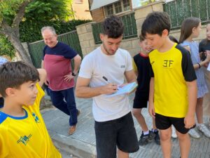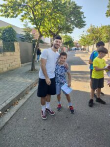 La comunitat educativa ha viscut una estona emocionant en la qual ha pogut gaudir de la seva companyia, s’ha fet fotografies i els ha signat samarretes, agendes, fotografies… estem immensament agraïts i emocionats per la teva visita Lluís. La teva presència ha estat un moment inoblidable per a tota l’escola, especialment per al teu germà Hugo.
