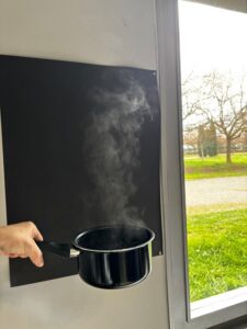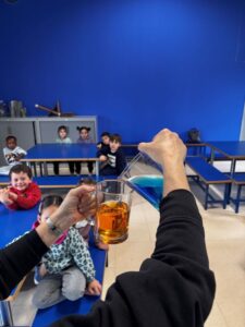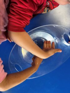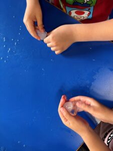 Els més petits han explorat l’aigua a través dels sentits. Han escoltat sons com la pluja o el mar, han observat com canvia de color amb papers de colors, l’han tocat en estat líquid, en gel i en forma de vapor, i fins i tot n’han tastat amb sal, vinagre o llimona. També han experimentat amb diferents olors. Ha estat una proposta molt sensorial que els ha despertat la curiositat i les ganes de participar.