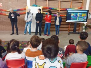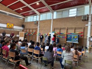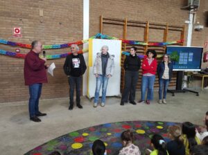 També ens van acompanyar Mati Mayoral (professora) i Mar Ruiz (exalumna i il·lustradora de dos dels poemes de Joan Francesc Dalmau) de l’Escola d’Art Municipal Leandre Cristòfol, així com Mar Font, del programa Cete+ de biblioteques escolars. Totes tres van poder veure com l’alumnat ha contribuït a donar forma visual als poemes recitats, amb unes il·lustracions plenes de creativitat i sensibilitat, mostrant una mirada pròpia i profunda sobre cada poema.