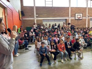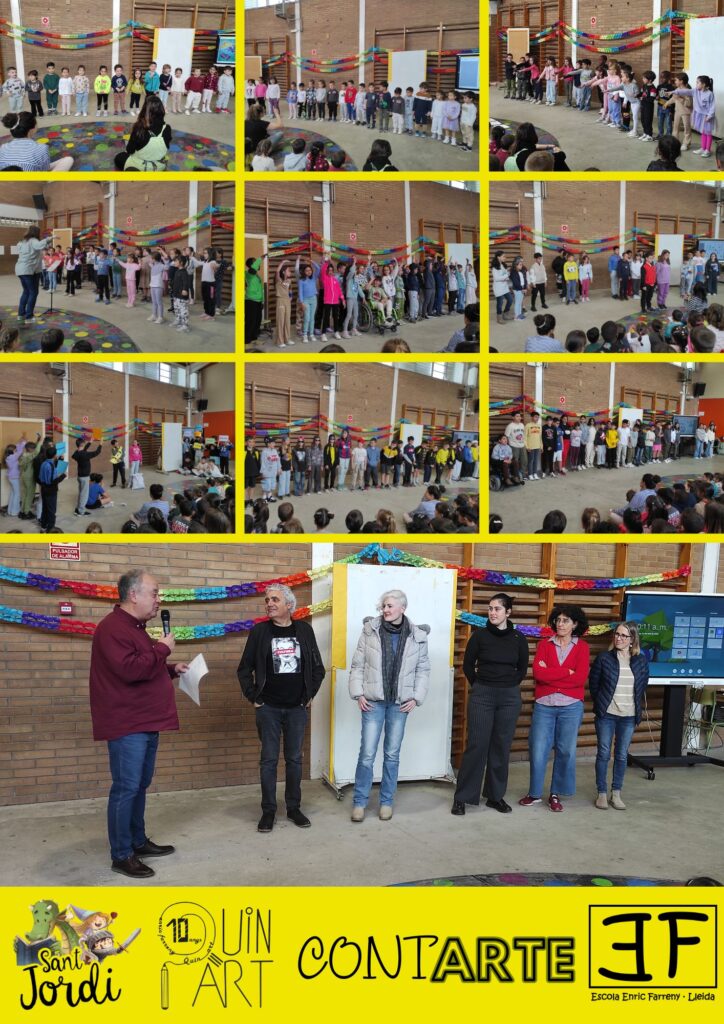 Dins de les activitats organitzades en aquest QuinArt 2025, ahir vam viure una diada de Sant Jordi molt especial a l’escola, plena de poesia, art i emoció! Vam tenir l’honor de rebre el Joan Francesc Dalmau, autor del llibre Una agulla en un paller, i Ester Gasol, il·lustradora de la portada i contraportada, que van poder gaudir del recital que l’alumnat d’Infantil i Primària els ha ofert.