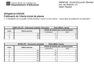 OFERTA DE PLACES INICIAL PREINSCRIPCIÓ CURS 2025-26