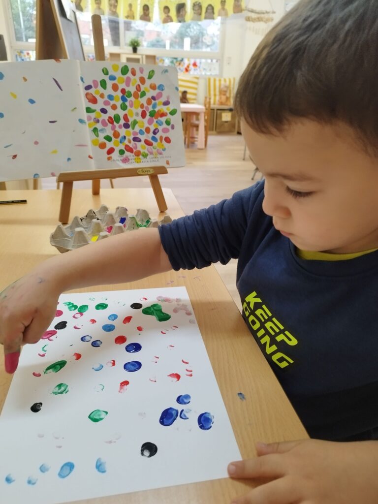 A la Comunitat de Petits entenem l’educació artística com una oportunitat perquè els nens i nenes puguin expressar-se a través del llenguatge plàstic i experimentin amb diferents materials i tècniques. Així doncs, hi ha propostes artístiques dins de les petites històries i les propostes d’aprenentatge, però també hi ha una franja de l’horari dedicada únicament a experimentar amb l’art.