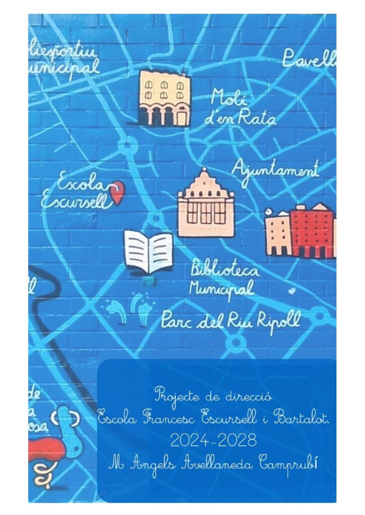 Projecte de direcció 2024 – 2028 Aquí podreu consultar el projecte de direcció 2024 – 2028 de la nostra escola Fransec Escursell i Bartalot per Mª Àngels Avellaneda Camprubí.