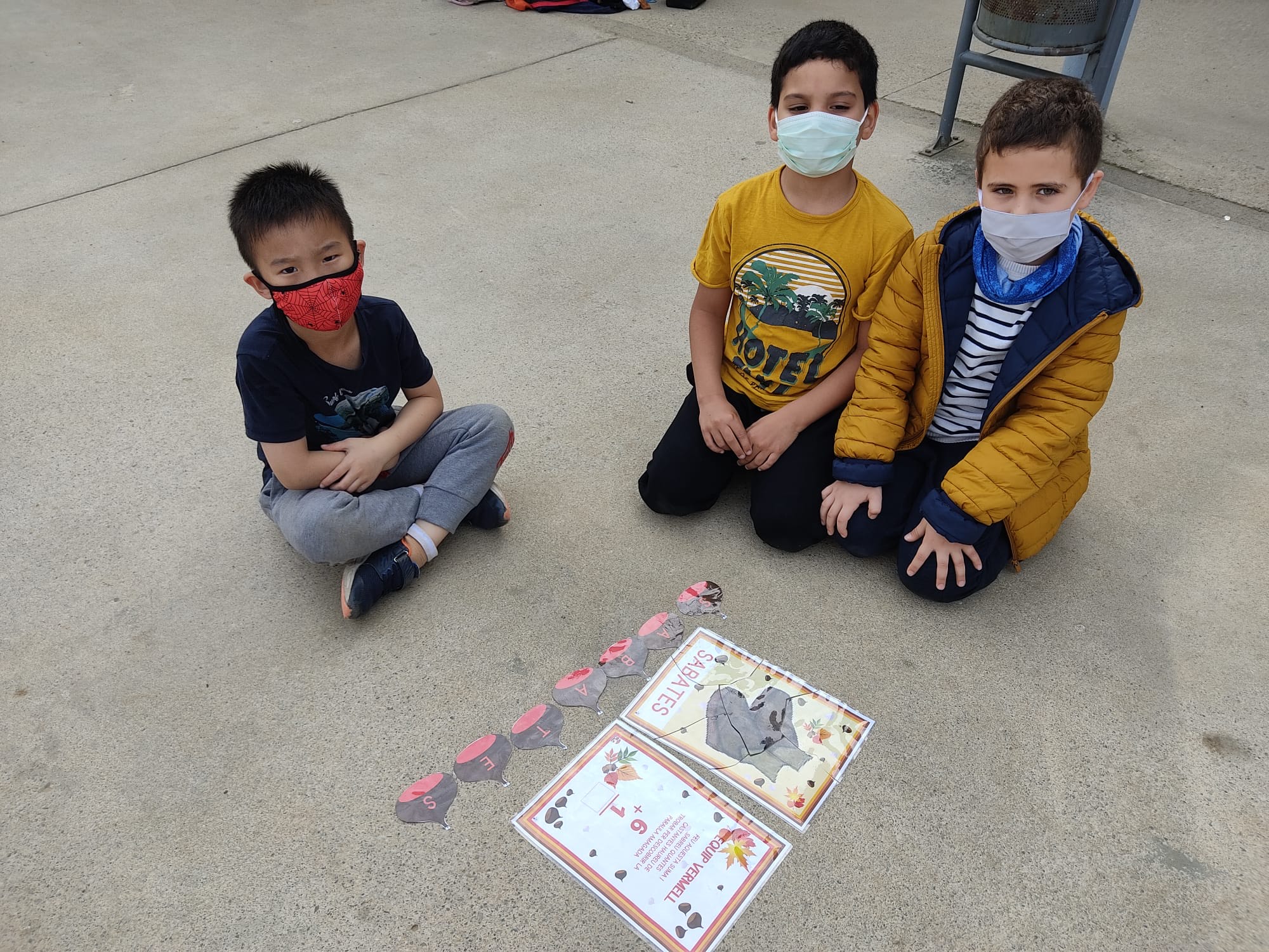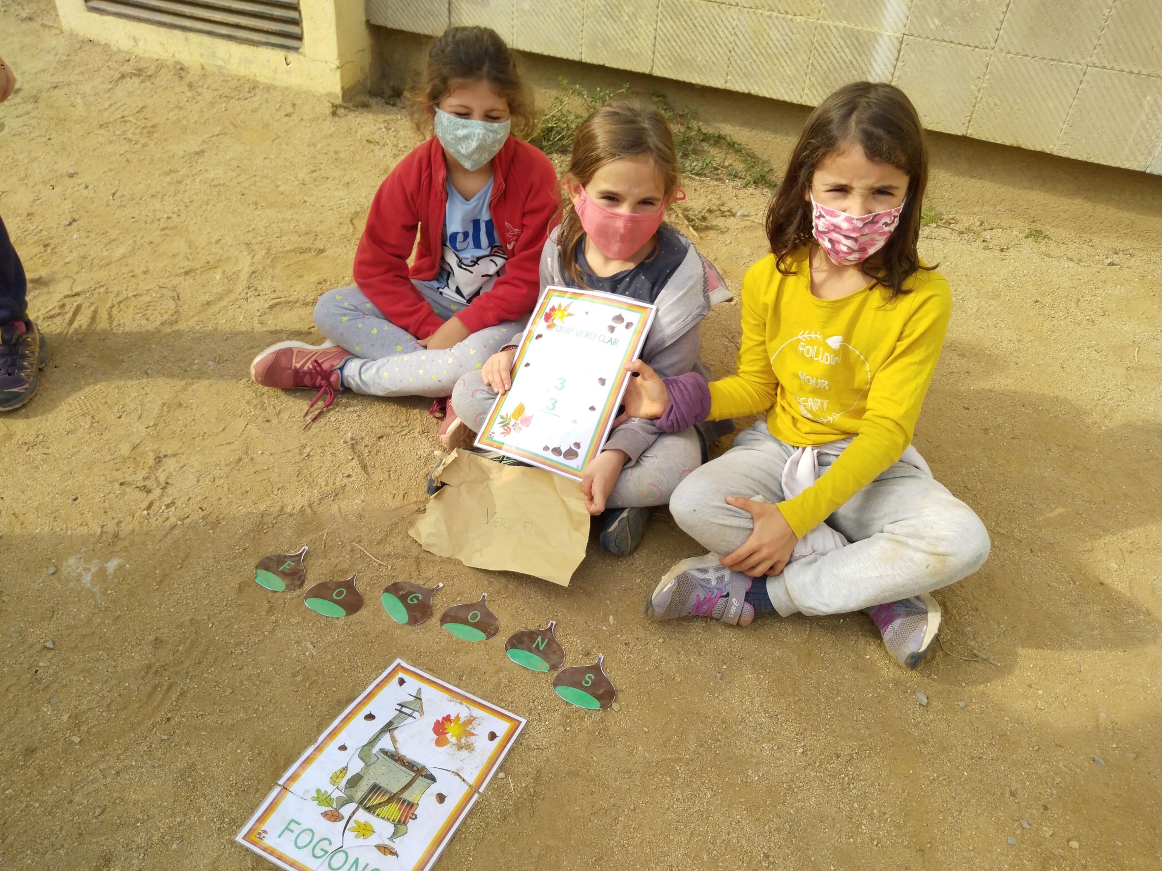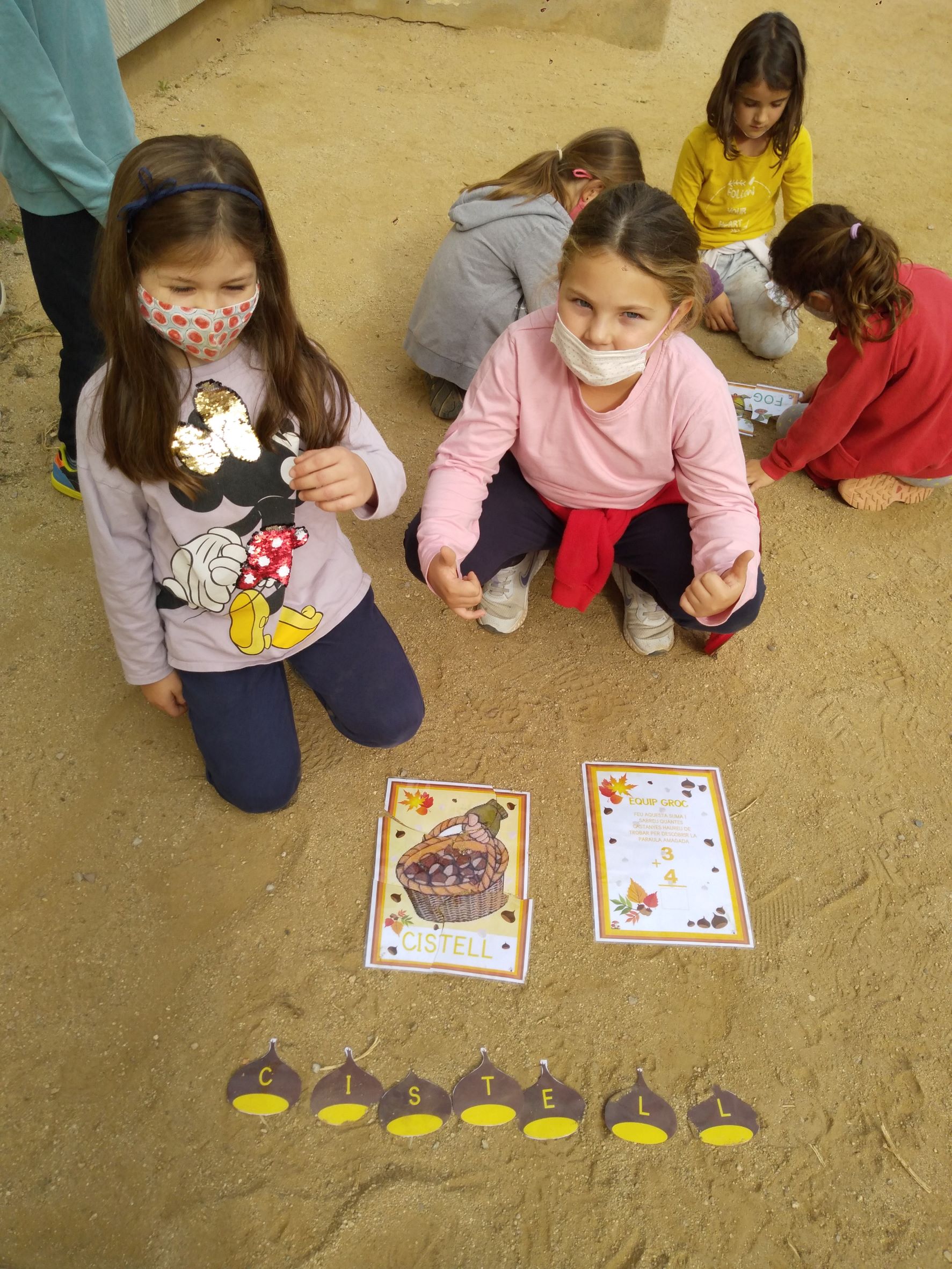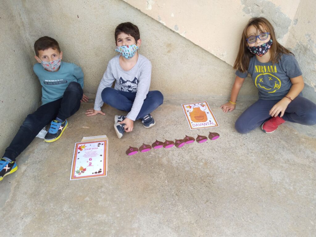 Primer hem fet grups de colors i després cada grup ha hagut de fer una suma per saber quantes castanyes havien de buscar. Un cop trobades, han hagut d’endreçar les castanyes i han descobert quin era l’element que li faltava. Per últim han fet un trencaclosques on es podia veure el que la castanyera havia perdut.