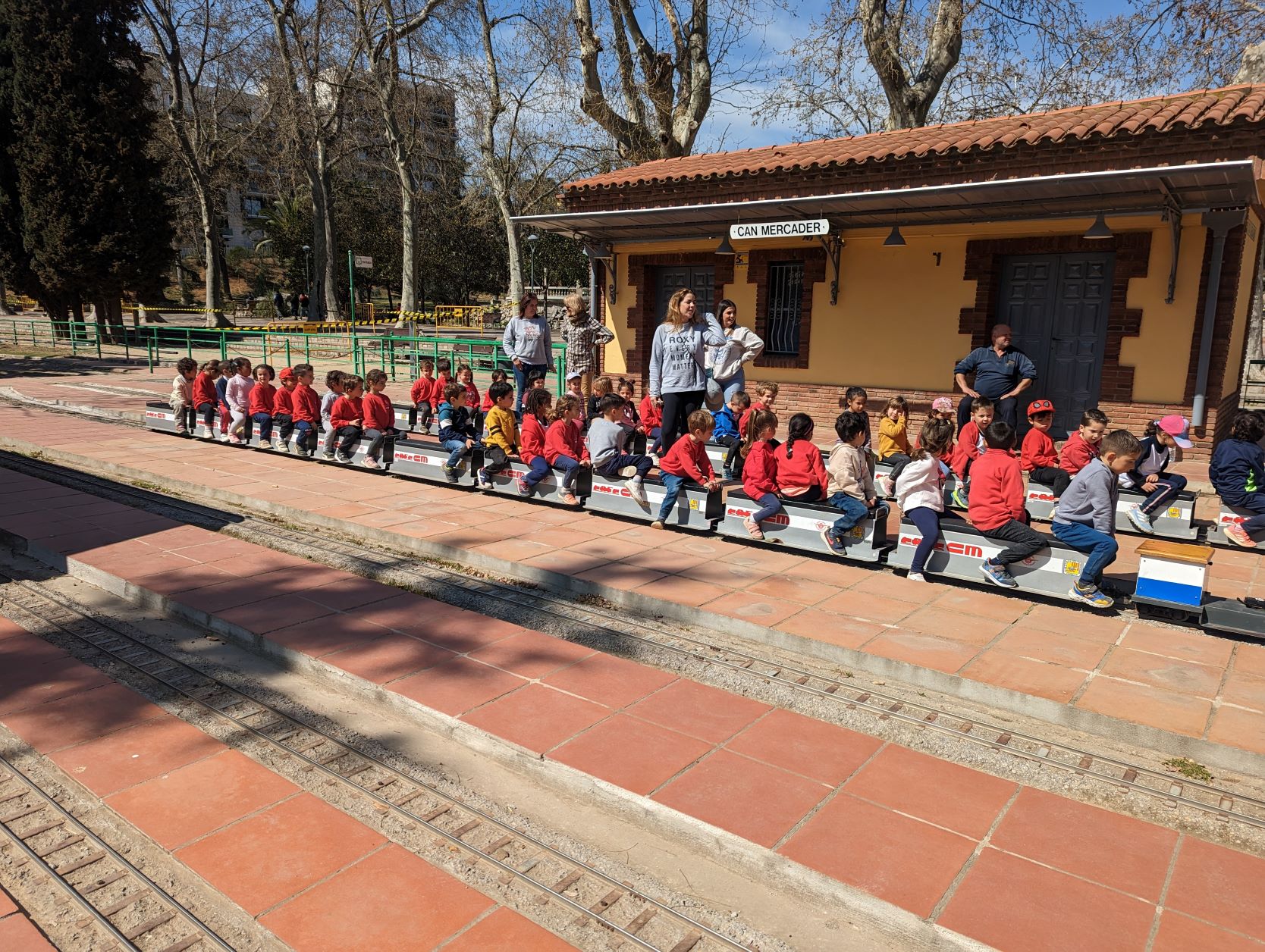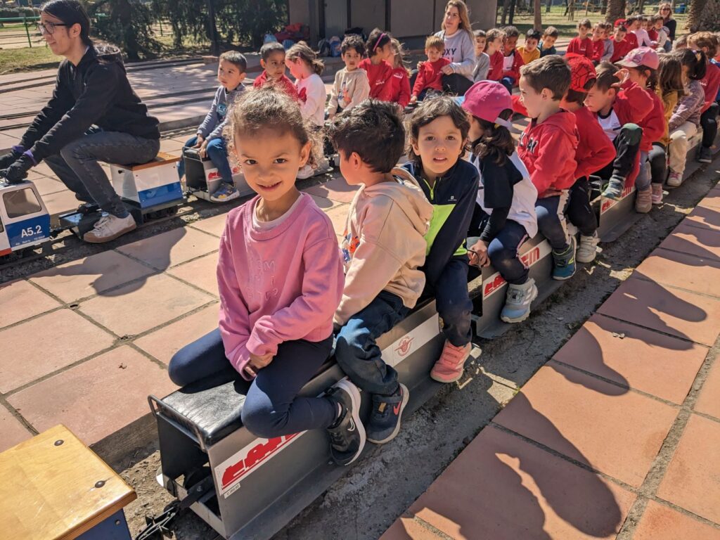 Aquest segon trimestre hem treballat els transports i fa uns dies els nens i nenes d’ I4 vam anar d’excursió al Parc de Can Mercader i vam pujar al trenet. Ens ho vam passar d’allò més bé i ens va fer un dia molt bonic!