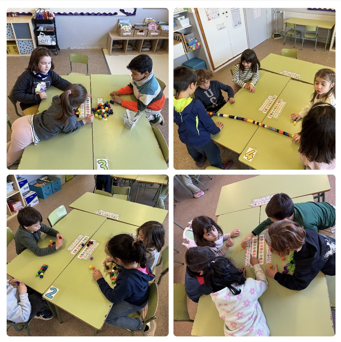 També treballem la lectura i l’escriptura dels nombres fins al 50 amb jocs, reptes i activitats en petit grup que fomenten la participació i la confiança. Comptar endavant i enrere, ordenar nombres o buscar-ne de propers ens ajuda a consolidar aquests aprenentatges de manera natural.