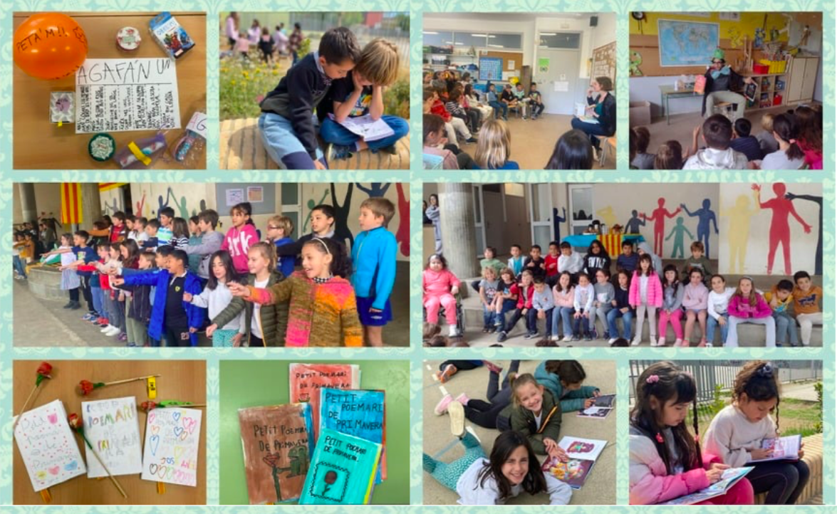 A la tarda, han vingut l’Ignasi i l’Elisenda a explicar-nos contes que ens han agradat molt i ens han donat idees bastant entremaliades que potser algun dia ens faran falta com “no he pogut fer els deures perquè una planta carnívora se m’ha menjat tots els llapis que tinc a casa”. I per acabar, hem baixat al pati, hem cantat “Has de ser tu mateix/a” de la Clika per la resta de nens i nenes de l’escola i hem berenat pa amb xocolata. Quan ens han vingut a buscar les famílies els hem regalat una rosa que serveix de punt de llibre i un petit poemari de primavera fet per nosaltres mateixos. Ha estat un dia fantàstic!!!!