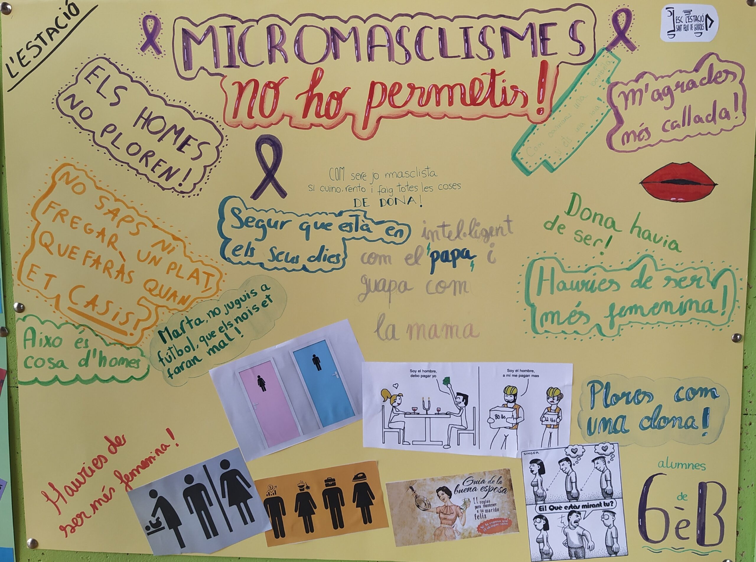 A l’entrada de l’escola cada classe ha fet un mural ple de cartells amb exemples de micromasclismes, comentaris i imatges. A valors hem estat treballant molt més sobre el tema.