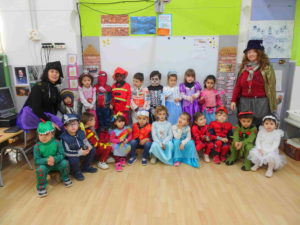 Durant la setmana hem seguit les consignes del Rei Carnestoltes i l’últim dia hem fet la rua per tot el pati de l’escola, ball i desfilada de disfresses!