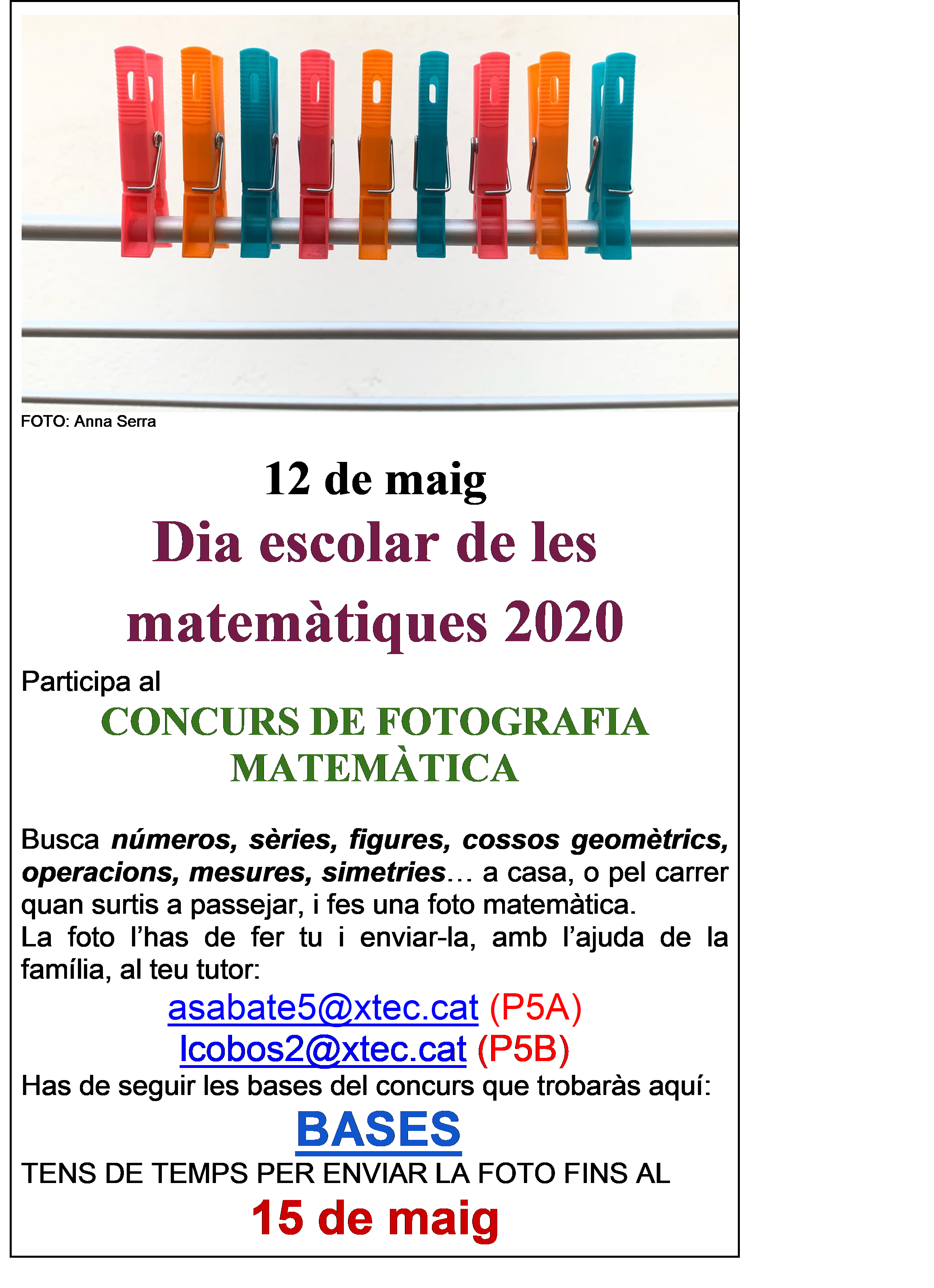 Dimarts 12 de maig  és EL DIA ESCOLAR DE LES MATEMÀTIQUES.