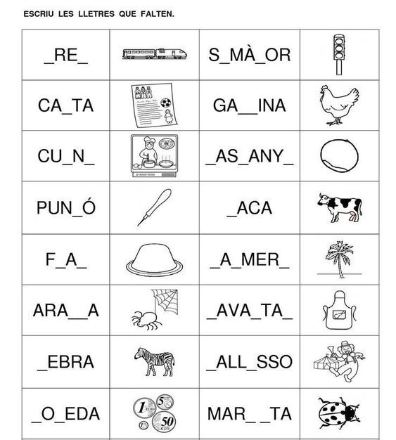 Escriviu les lletres que falten. Un cop escrites les podeu llegir.