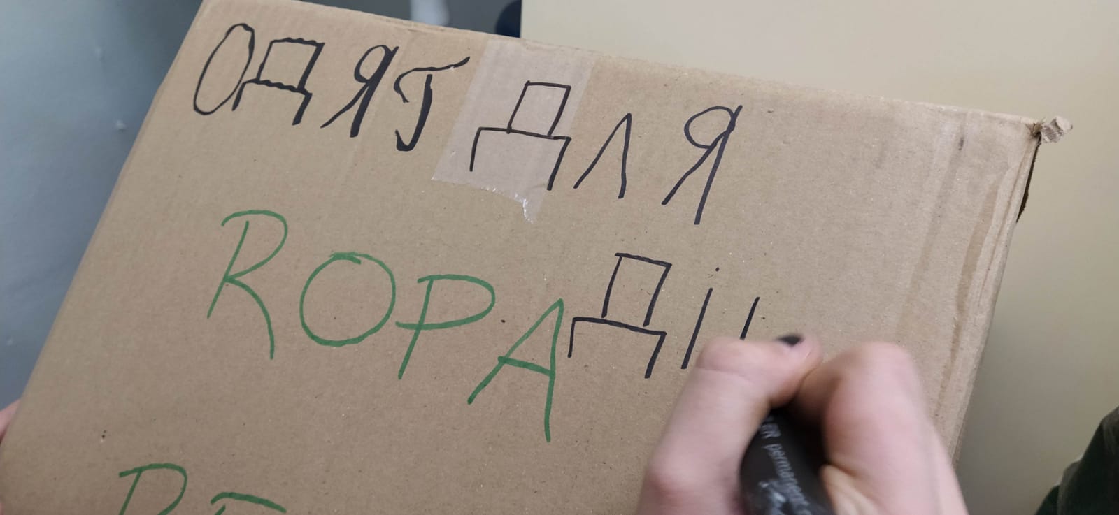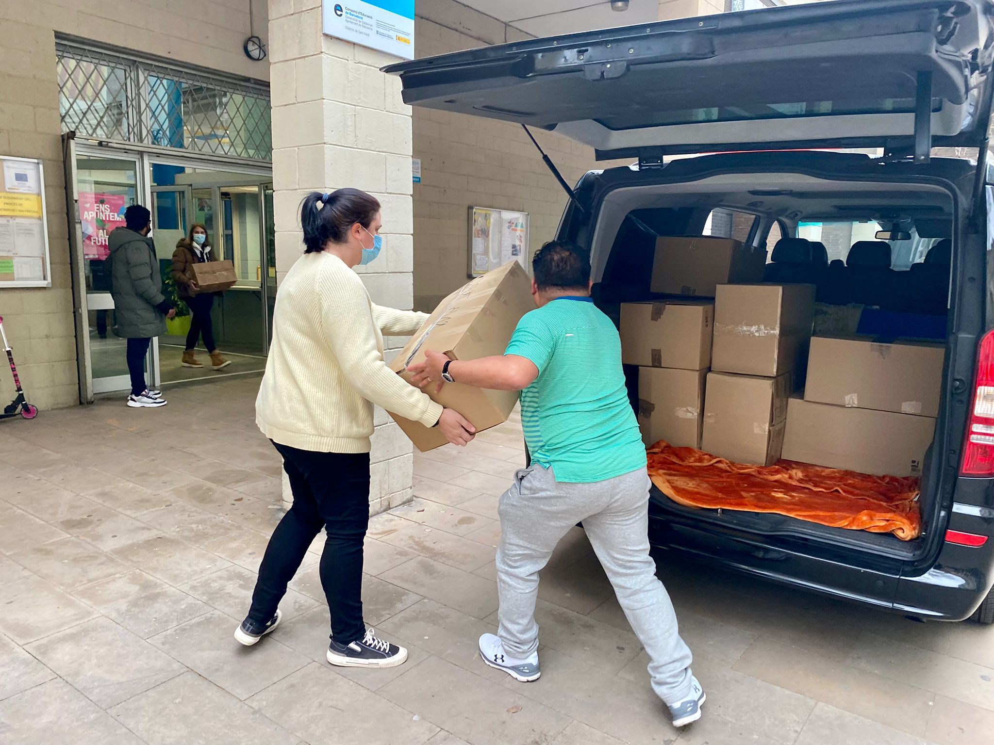 A l’Olga, a l’Anna i el Marko per etiquetar totes les caixes en ucraïnès.